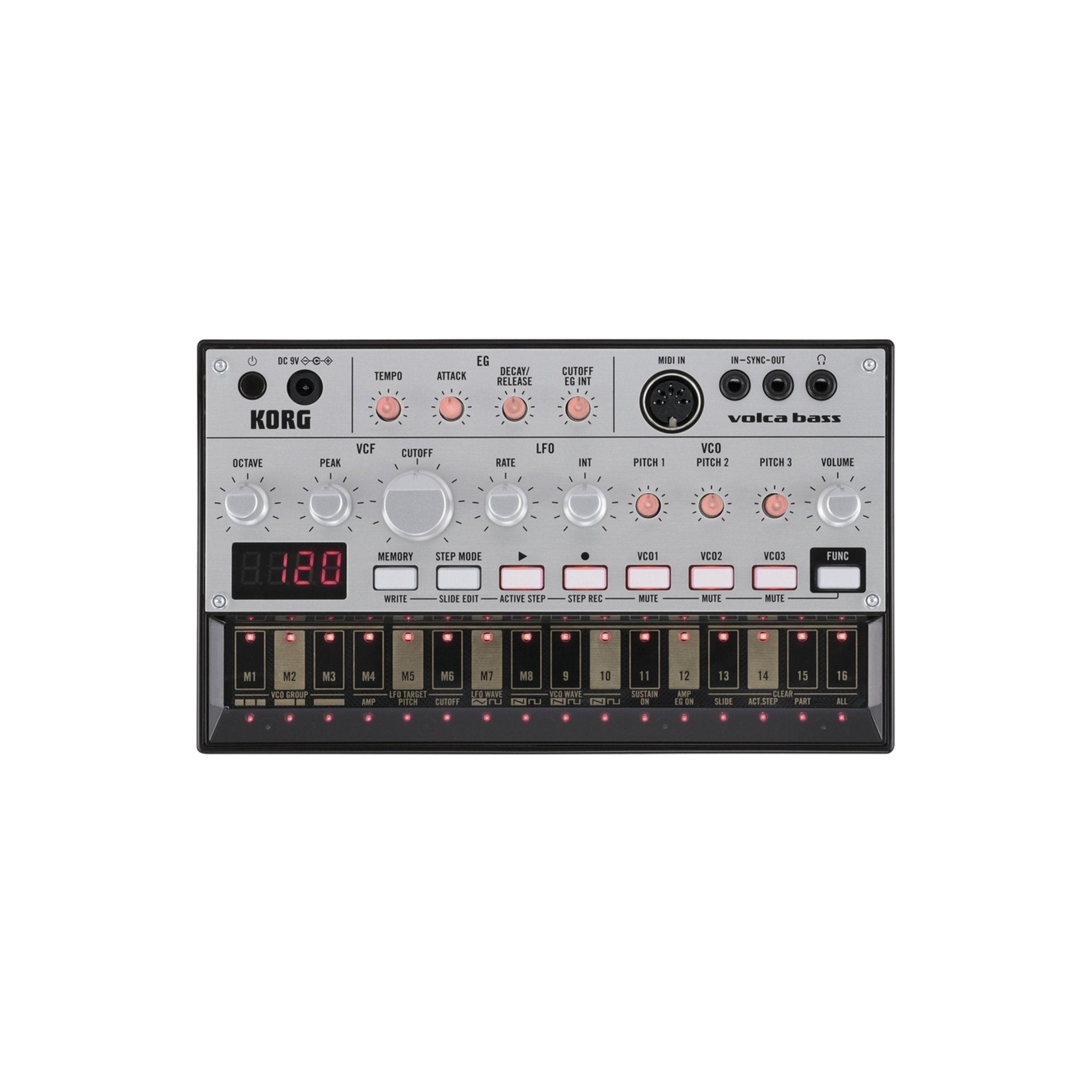 Volca bass is developed to create powerful analog bass sounds with its 3 oscillators and newly designed analog filters. With the built-in Electribe-inspired step-sequencer, you easily create ultimate bass steps, different for the 3 oscillators. Then influence these with the "Slide" function - necessary for acid and other types of electronic music or eg the "Active steps" function which can skip or add selected steps to your loops.