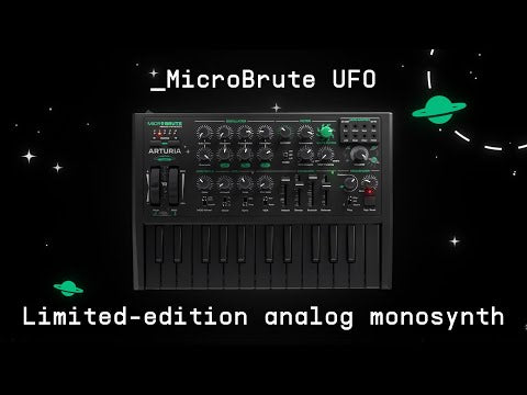 Arturia MicroBrute UFO är en specialutgåva av den legendariska analoga monosynthen MicroBrute. Med sin 100 % analoga signalväg, det ikoniska Steiner-Parker multimode-filtret och den karaktäristiska Brute Factor™-driven levererar den allt från glödande leads till djupt mullrande basar. Den mattsvarta finishen med marsgröna detaljer gör den till ett verkligt samlarobjekt – lika inspirerande för ögat som för örat.