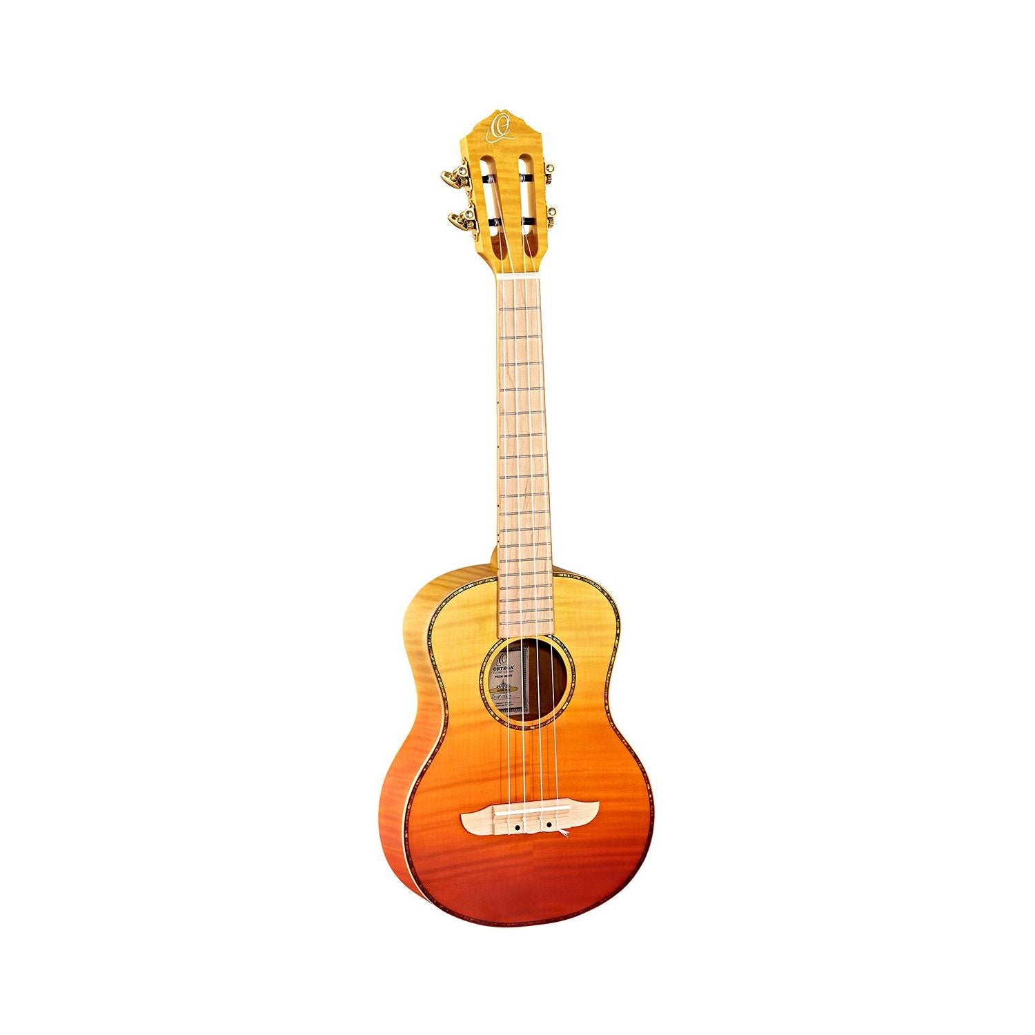 Antingen du bara spelar för hemmabruk eller uppträder i professionella sammanhang, har Ortega en ukulele för dig. I Prism serien hittar du tre modeller, alla med vacker flammig lönn i topp, sidor och botten och guldpläterad mekanik. RUPR är lackerad i Tequila Burst Fade. Levereras med en Deluxe gigbag.