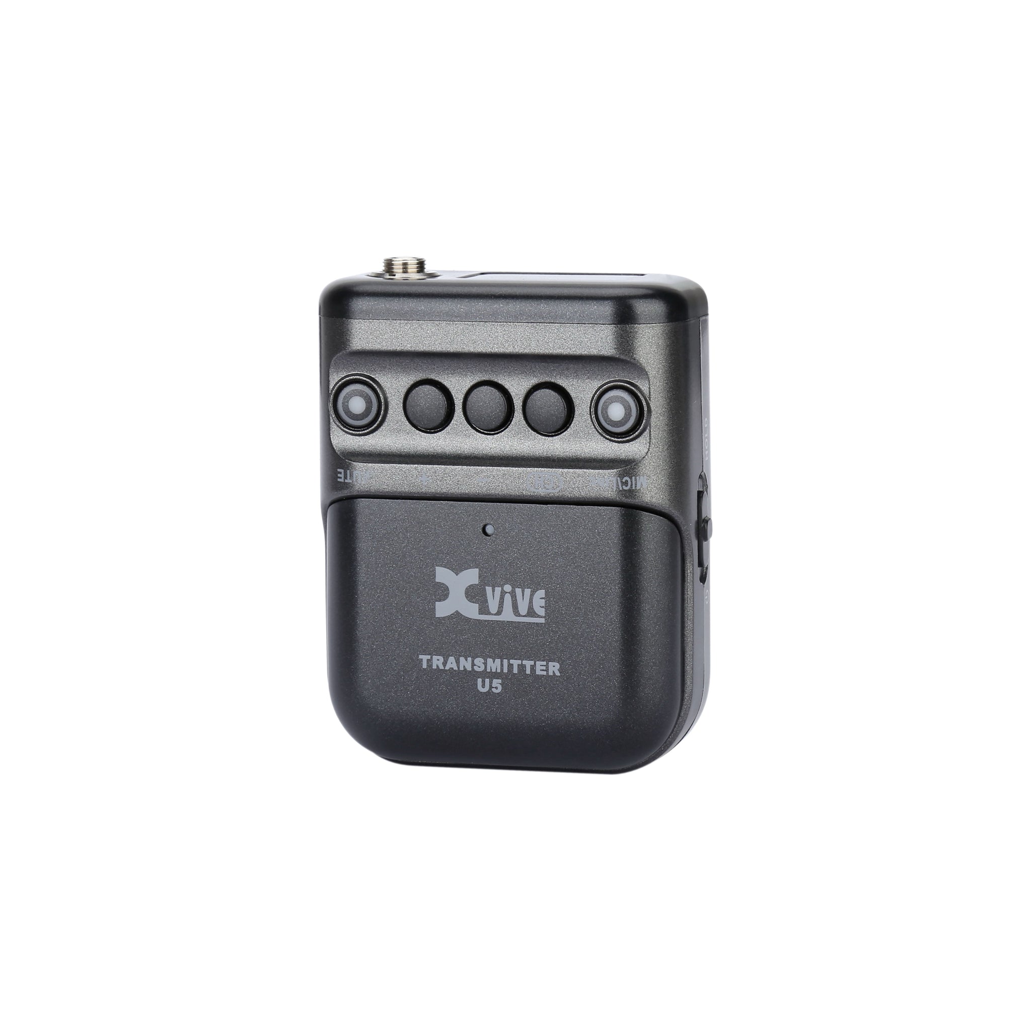 The U5 package contains a transmitter, a receiver, two batteries, an LV1 omnidirectional mosquito microphone with lockable connector, microphone clip, puff cover and charging cable.