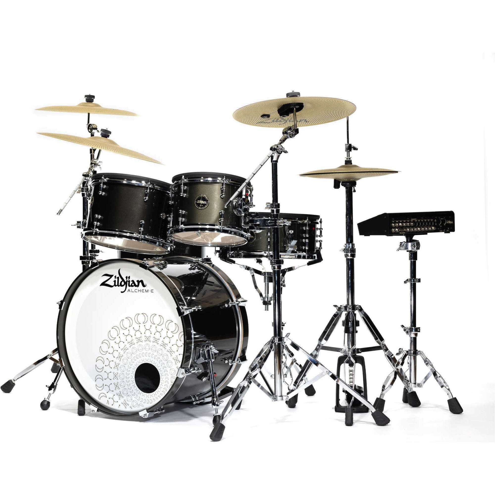 Zildjian digitala trumset ALCHEM-E har den mest naturliga och realistiska spelkänslan du kan tänka dig. Med dom revolutionerande cymbalerna med tre trigzoner, tillverkade som en vanlig cymbal får du samma anslagskänsla och utseende som på ett akustiskt trumset. Modulen Zildjian E-VAULT (ZEV1) är fullmatad med realistiska trumsound som i kombination med trummornas inbyggda triggmickar av högsta tänkbara kvalité ger ett naturligt sound och en äkta spelkänsla med full dynamik. Oavsett om du övar, repar, spelar in eller är ute på gig så levererar ALCHEM-E till 100%!