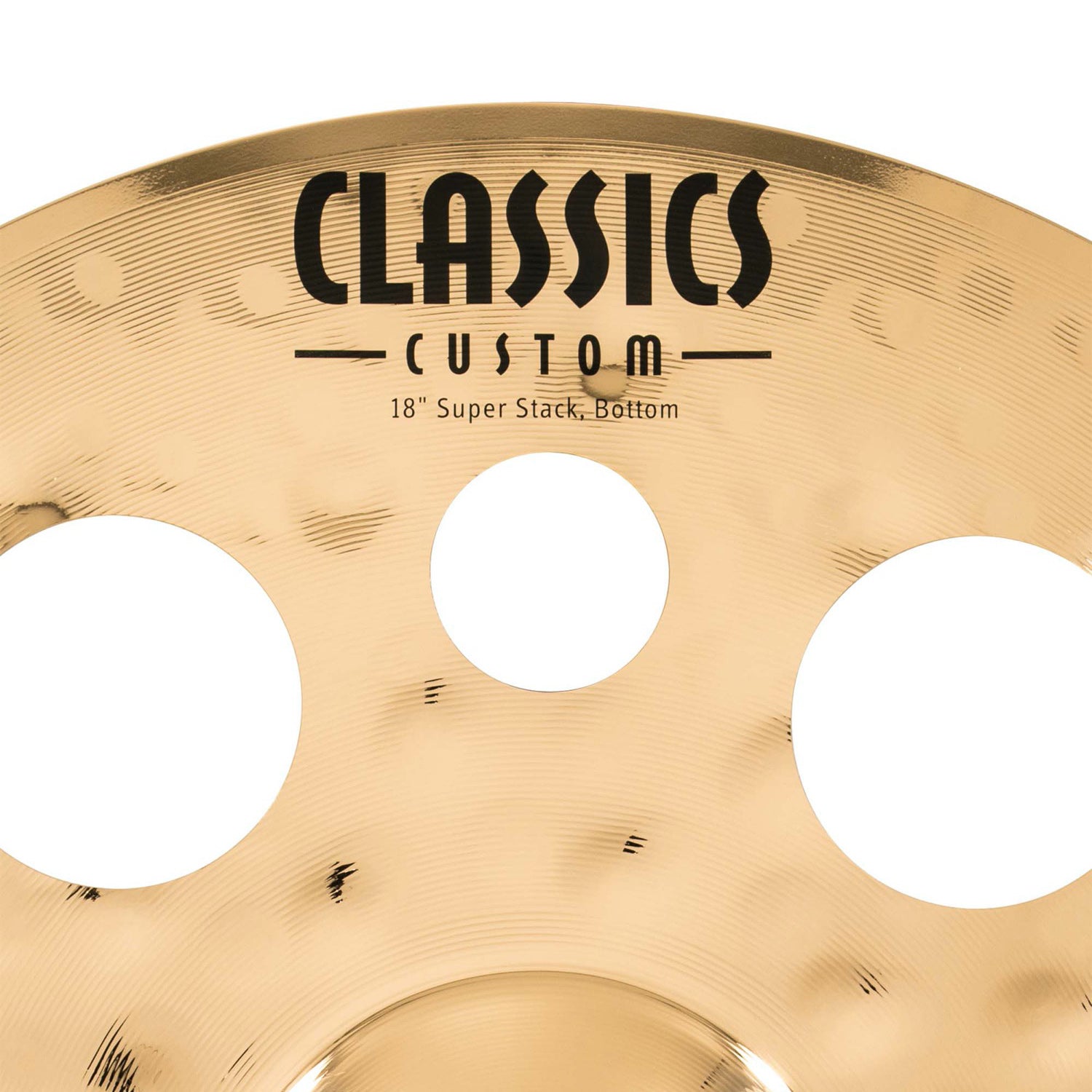 Thomas Lang var ute efter en combination som kunde gå igenom alla musikaliska ljudlandskap. De två 18" Classics Custom cymbalerna levererar! Topp chinacymbalen ger flera ljudmöligheter beroende på var på cymbalen man spelar. På chinans böjda form blir soundet kangigt medan kanten ger ett mer trashigt sound. I likhet med alla stackcymbaler går det lätt att justera sustainen med cymbalmuttern. Thomas skräder inte orden "This is the most vesatile stack combination you'll find".