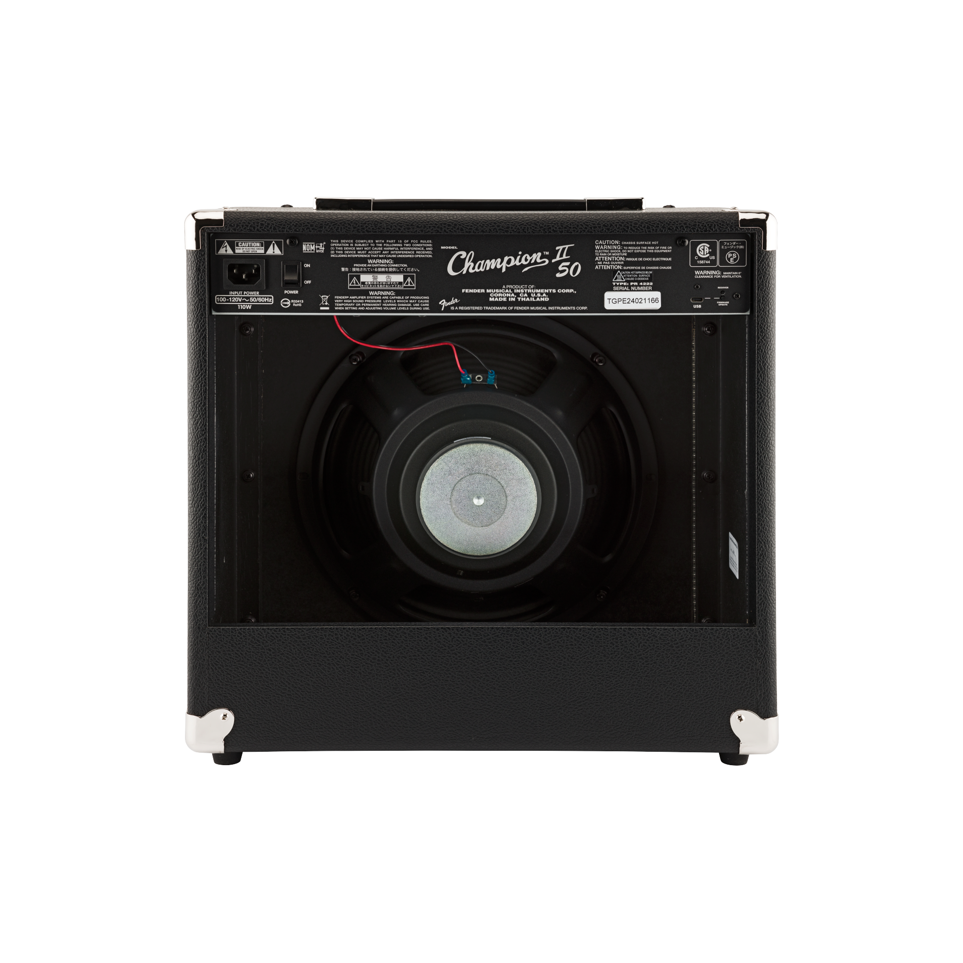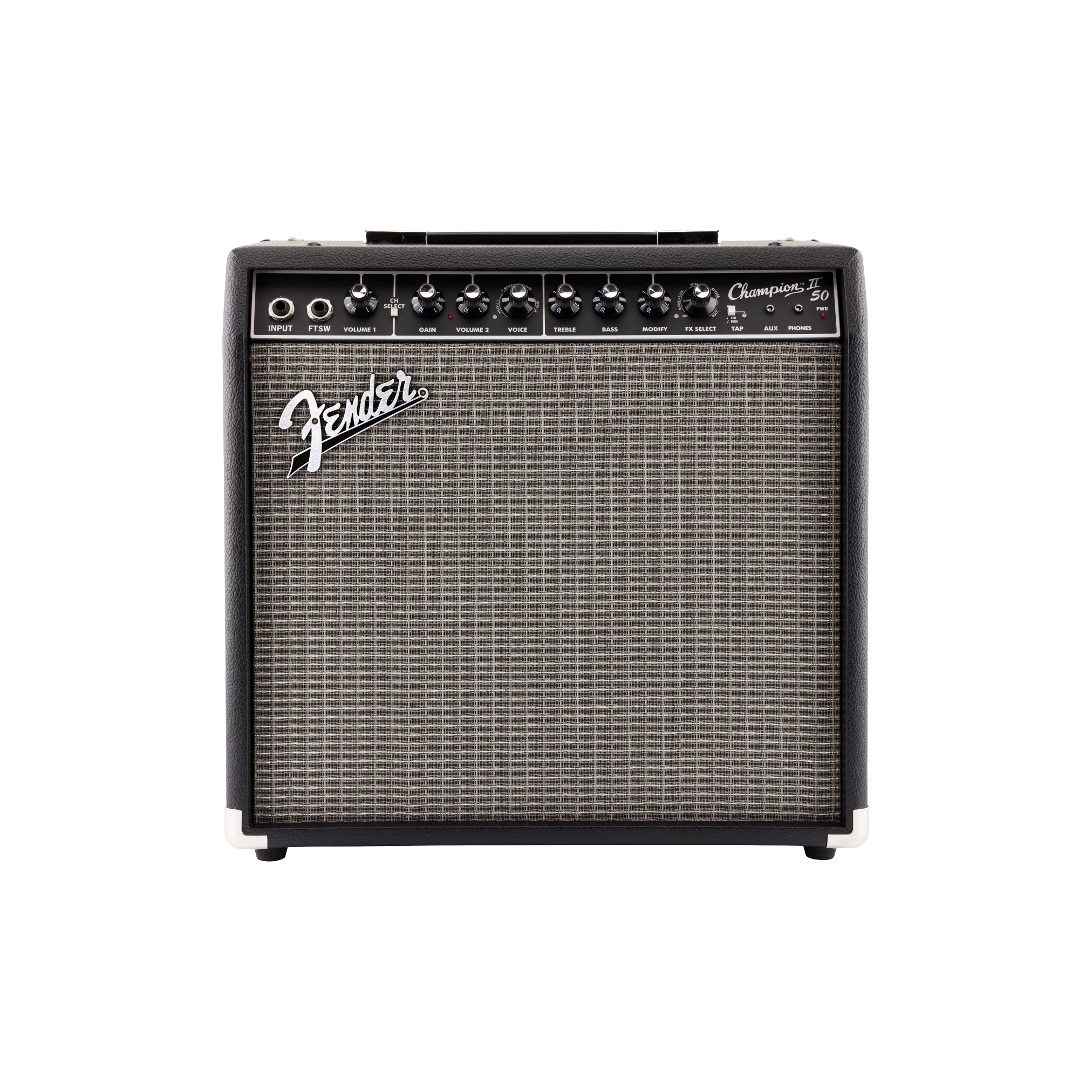 Fender Champion II levererar världsberömda Fender clean- och overdrive-toner plus ett urval av brittiska och moderna distorsionssmaker. Från jazz till country, blues till metal, det är lätt att få fram rätt ljud. Det finns också ett inbyggt effektutbud med bland annat reverb, delay/echo, chorus, tremolo och Vibratone. Delay-tider och tremolohastigheter kan enkelt ställas in med TAP-knappen för att matcha låtarnas tempon. Förstärkaren levererar 50 watt och har ett 12" element