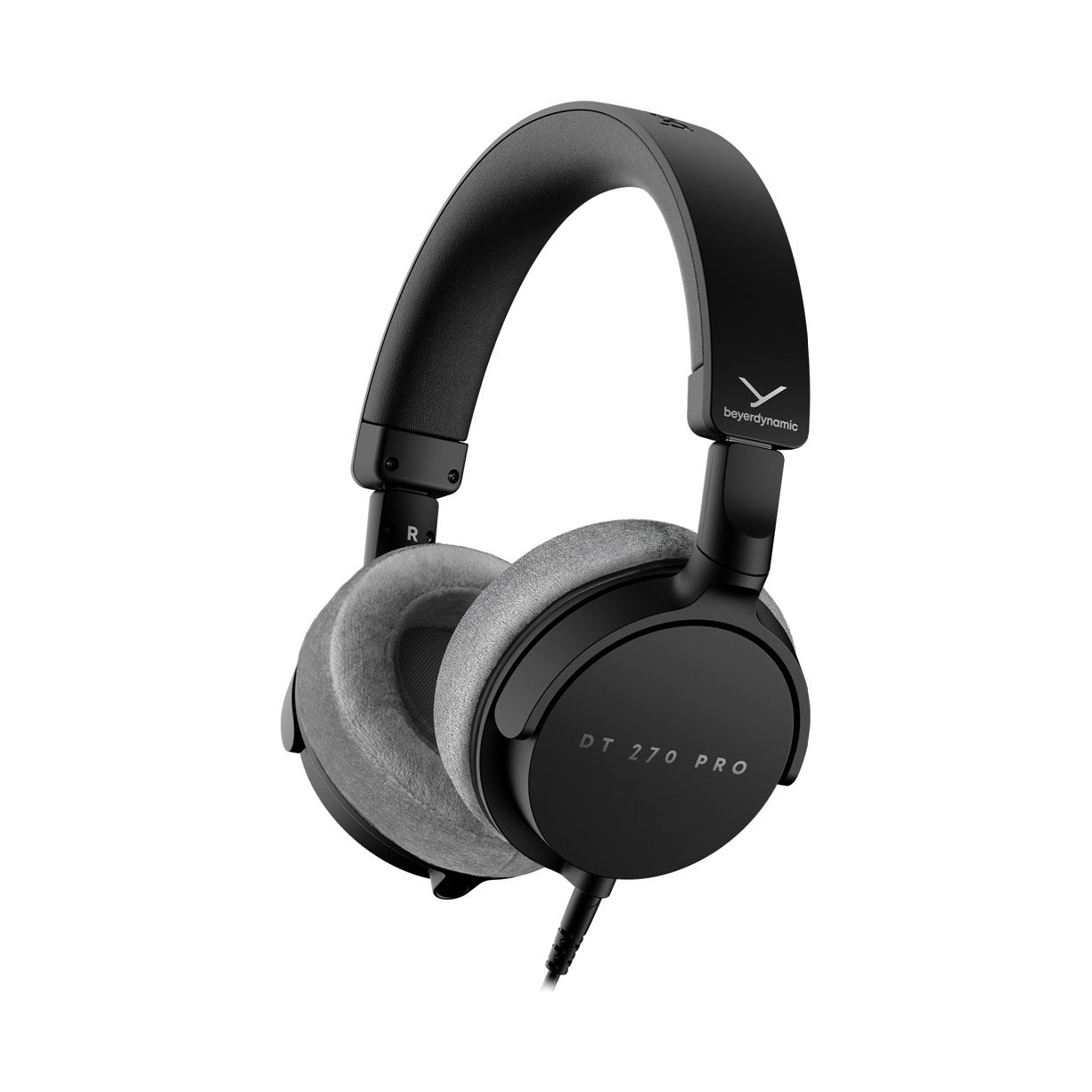 Den avtagbara enkelsidiga kabeln kan kopplas till antingen vänster eller höger öronkåpa. Medföljande USB-C till 3,5 mm-adapter möjliggör anslutning till moderna enheter, vilket gör DT 270 PRO till ett mångsidigt verktyg i alla miljöer.