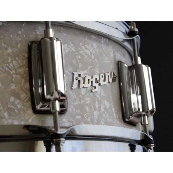 Rogers - DynaSonic 14×5 Wood Shell Snare | Beavertail Lug – White Marine Pearl - Musik Utan Gränser