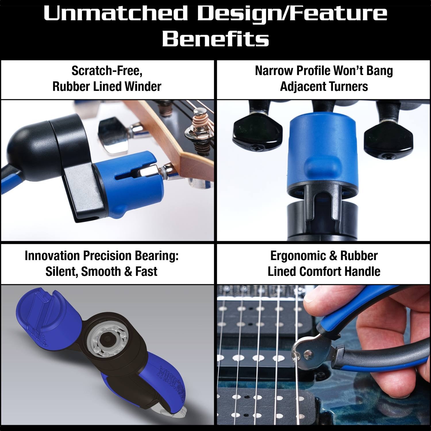 När det är dags för strängbyte är Grip One ett riktigt bra verktyg som gör strängbytet både snabbare och enklare. Grip One har tre olika funktioner, avbitare, strängvev samt att den även hjälper dig att ta ur strängstiften i din akustiska gitarr.