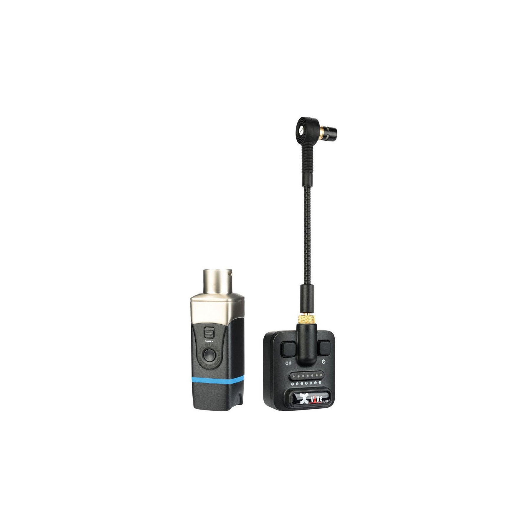 Digitalt trådlöst system för akustisk gitarr med svanhalsmikrofon och sargklämma.