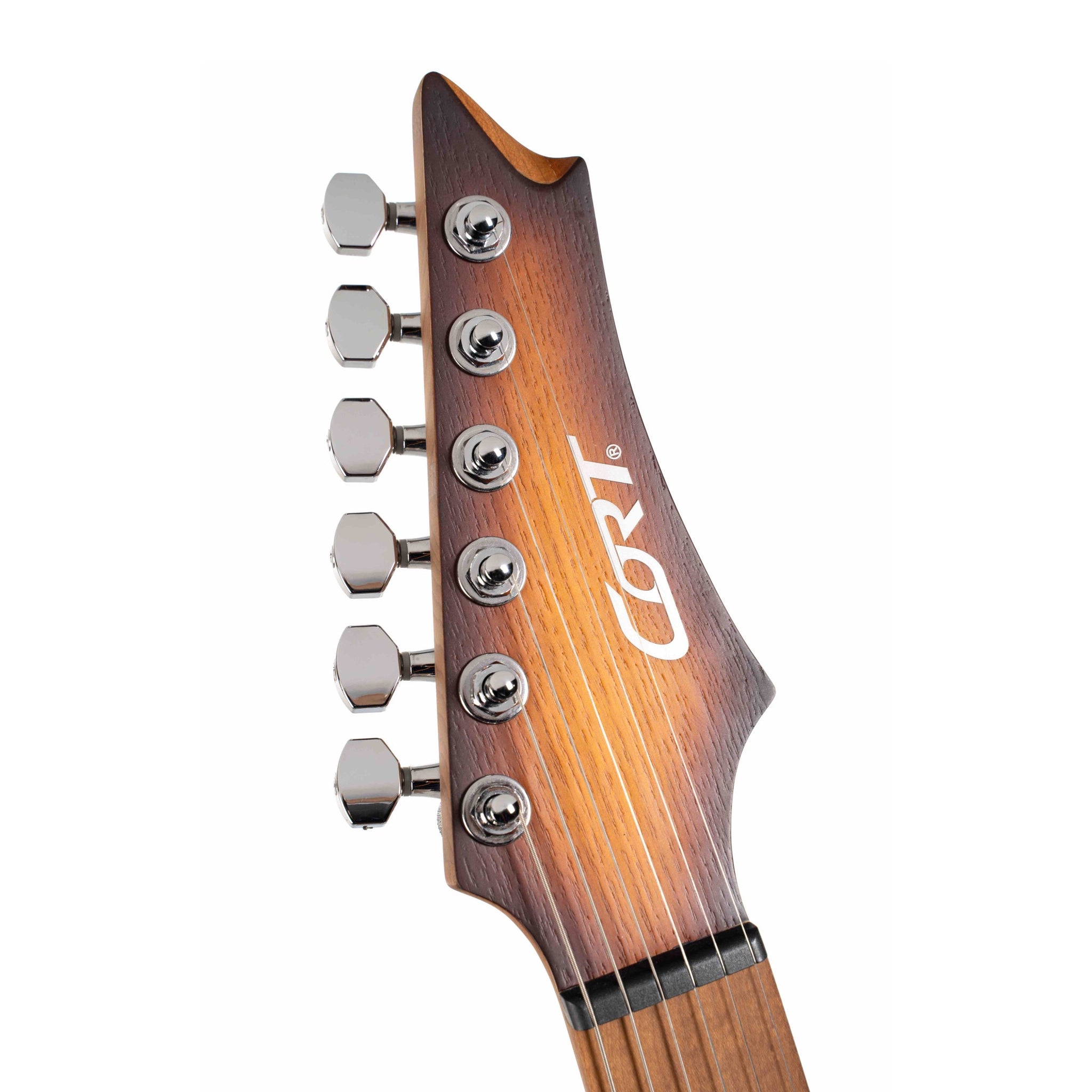 Cort CFA-III Tremolo-systemet använder rostfritt stål i stallsadlar, stallplatta och block, gjutet med MIM-teknik (Metal Injection Molding). Det ger ett artikulerat, kraftfullt och hållbart sound med förbättrad sustain. Den nedsänkta designen tillåter både upp- och nedböjningar för maximal kontroll och uttrycksfullhet.
