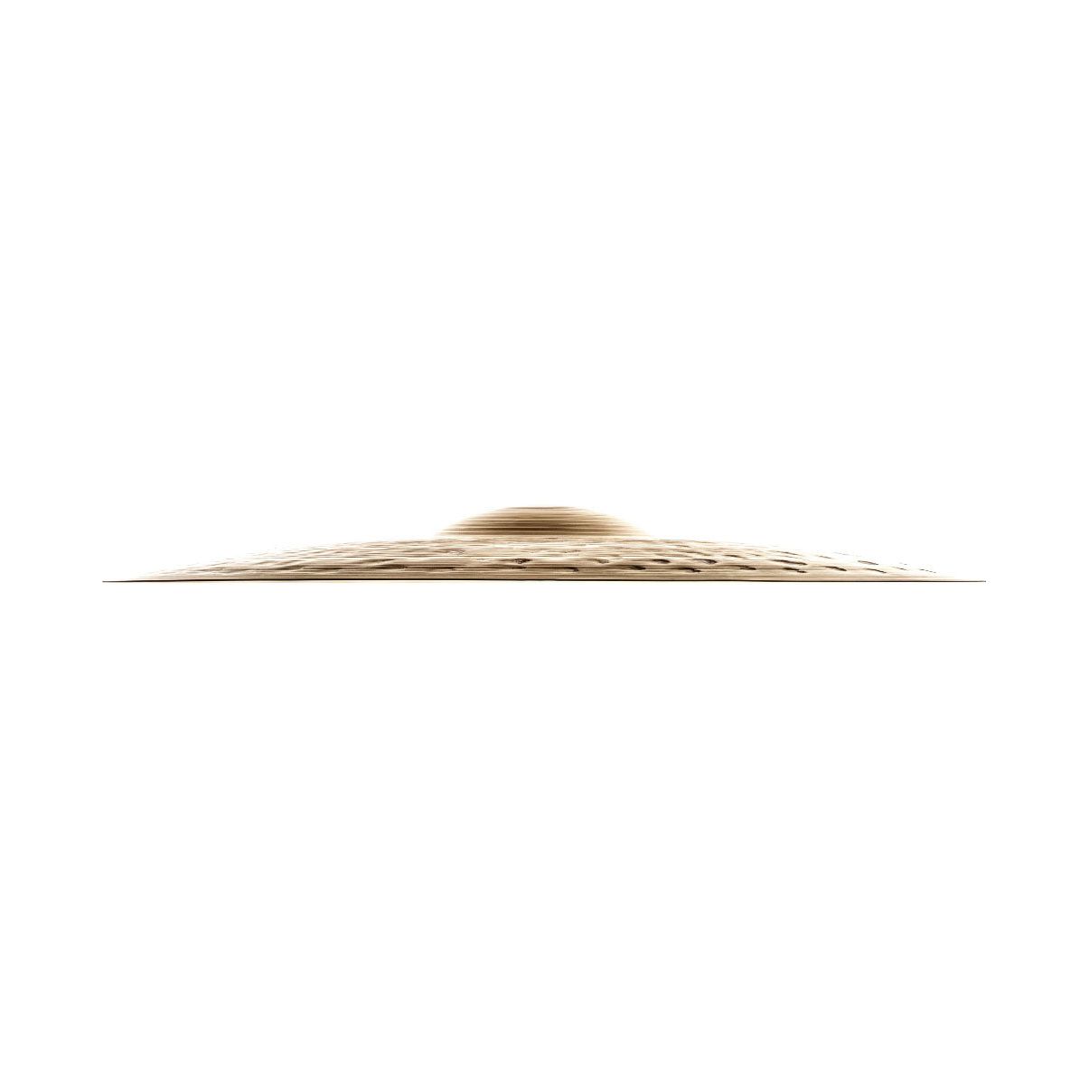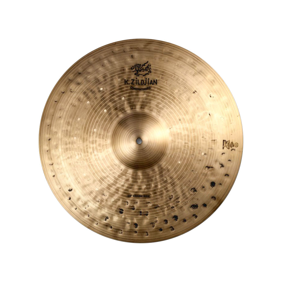 Beautifully dark crash/ride with both solid body and a clarity that makes it penetrate and be heard. Use it as a massive crash or a soft ride. The rough hammering makes each specimen completely unique in both sound and look.