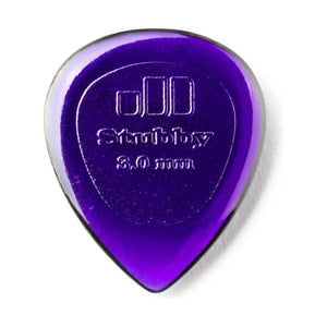 I motsats till vanliga, platta plektrum, så har Stubby Jazz en stor, konisk spets. Detta gör det möjligt för plektrumet att glida av strängen med mindre friktion och det reducerar ljud från plektrumet. Det betyder också att det ger en mjukare känsla i fingret när plektrumet friger strängen.