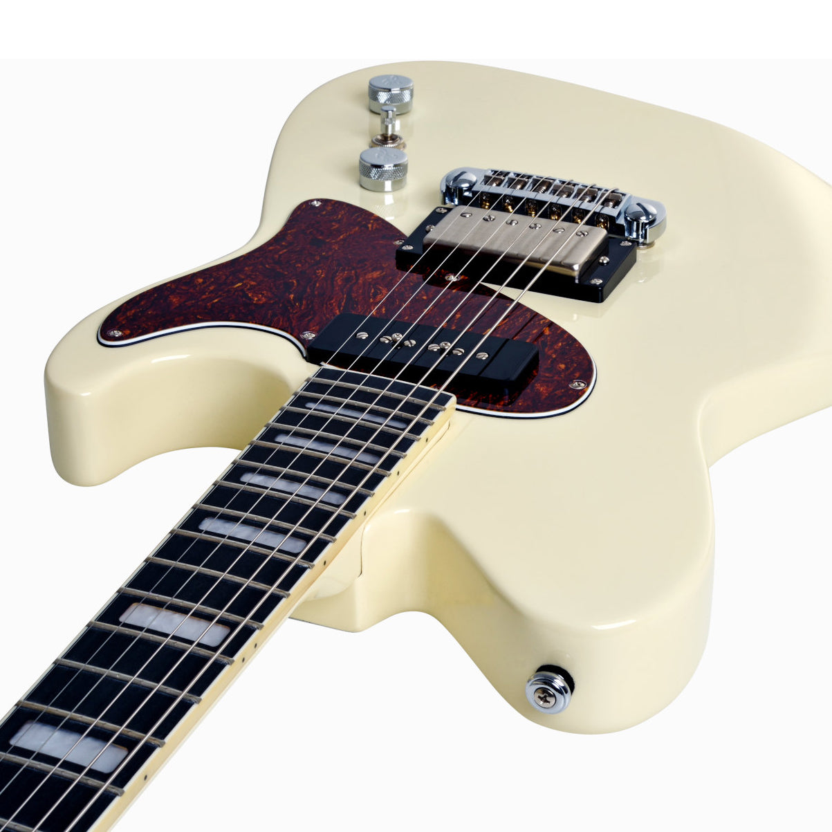 En fusion mellan modern utformning och Hagstroms tidslösa design. Offset-kroppen är tillverkad av mahogany och har försetts med en lönntopp. Halsen är tillverkad i Kanadensisk lönn med en greppbräda av Resinator och mensuren är 25,5"