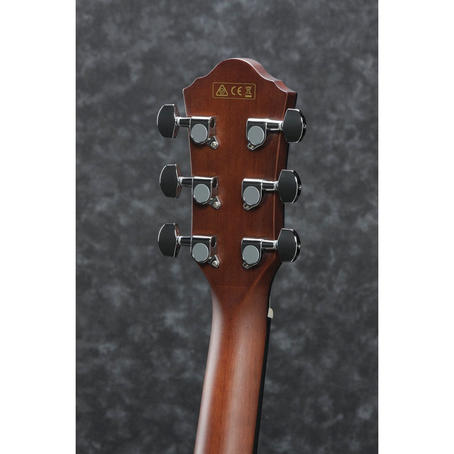 AEG-seriens smala, single-cutaway-kroppar levererar kraftfullt och balanserat akustiskt ljud, urkopplad eller genom en förstärkare eller PA-system. Dessa gitarrer kombinerar enkel spelbarhet, klassiska finishar och intuitiv elektronik för att skapa en akustisk kvalitetsgitarr som passar alla tillfällen.Högkvalitativa Ibanez-pickuper under sadeln och Ibanez-förförstärkare med inbyggd stämapparat, ger gnistrande toner som låter bra i alla miljöer.