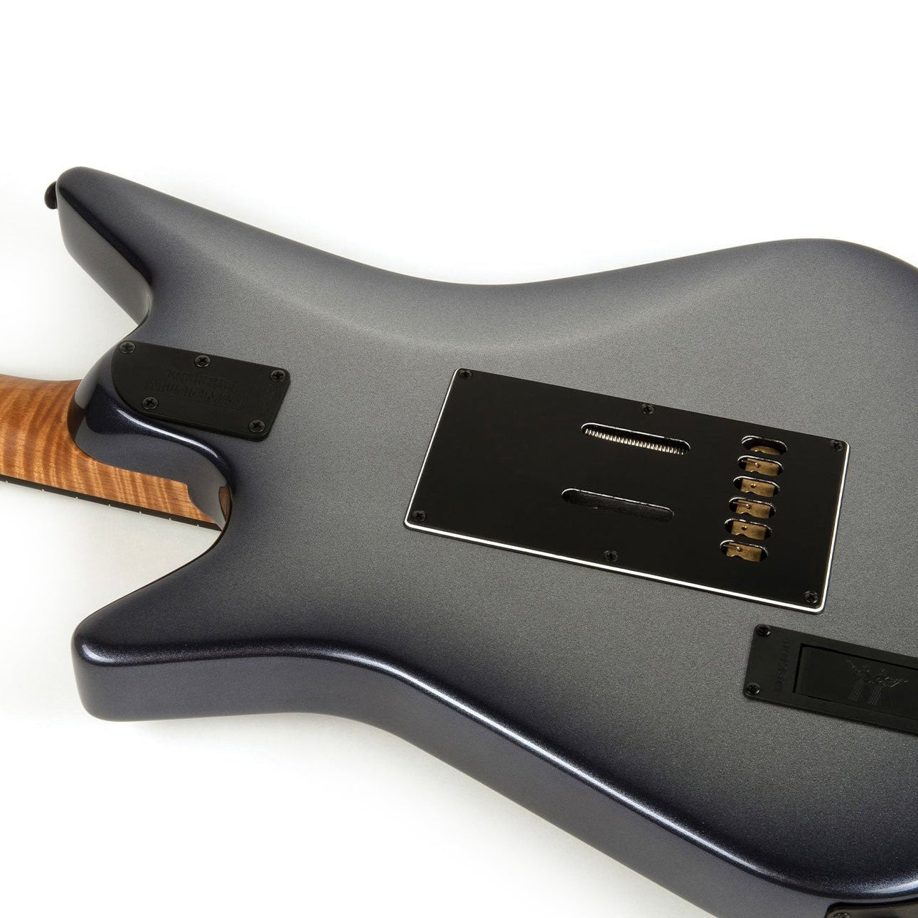 En supersnygg gitarr med unik design. Kropp i ask, Seymour Duncan single coils och rostad lönnhals med rostfria band.