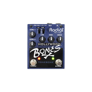 Vintage toner, solid prestanda. Radial Bones Hollywood Dual Distortion är en solid state-version av den populära Tonebone Classic distorsionspedalen. Den "magiska" insidan är en tvåstegs drivkrets som producerar söta men distinkta toner som påminner om de bästa American rörförstärkarna från det senaste halva århundradet, samtidigt som de levererar dynamisk förstärkare. Det betyder att när du stänger av din gitarr kommer Hollywood att städa upp som en riktig rörförstärkare.