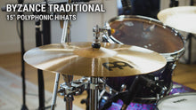 Moderna cymbaler i traditionell handhamrad B20-legering. Byzance Traditional har ett varmt och fylligt ljud, med bra dynamik, vilket gör att du kan styra ljudet och volymem lätt med anslaget. Dessa hihats är uttrycksfulla genom sin varierande profil med tunna kanter och en tjockare, osvarvad klocka. Dess medeltunna vikt av "själva bågen" gör att att den är väldigt mångsidig och lever upp till sitt polyfoniska namn. I stängt läge ger dessa hihats ett tydligt hihat ljud med precis rätt balans mellan tydlig attack och luftig underton.