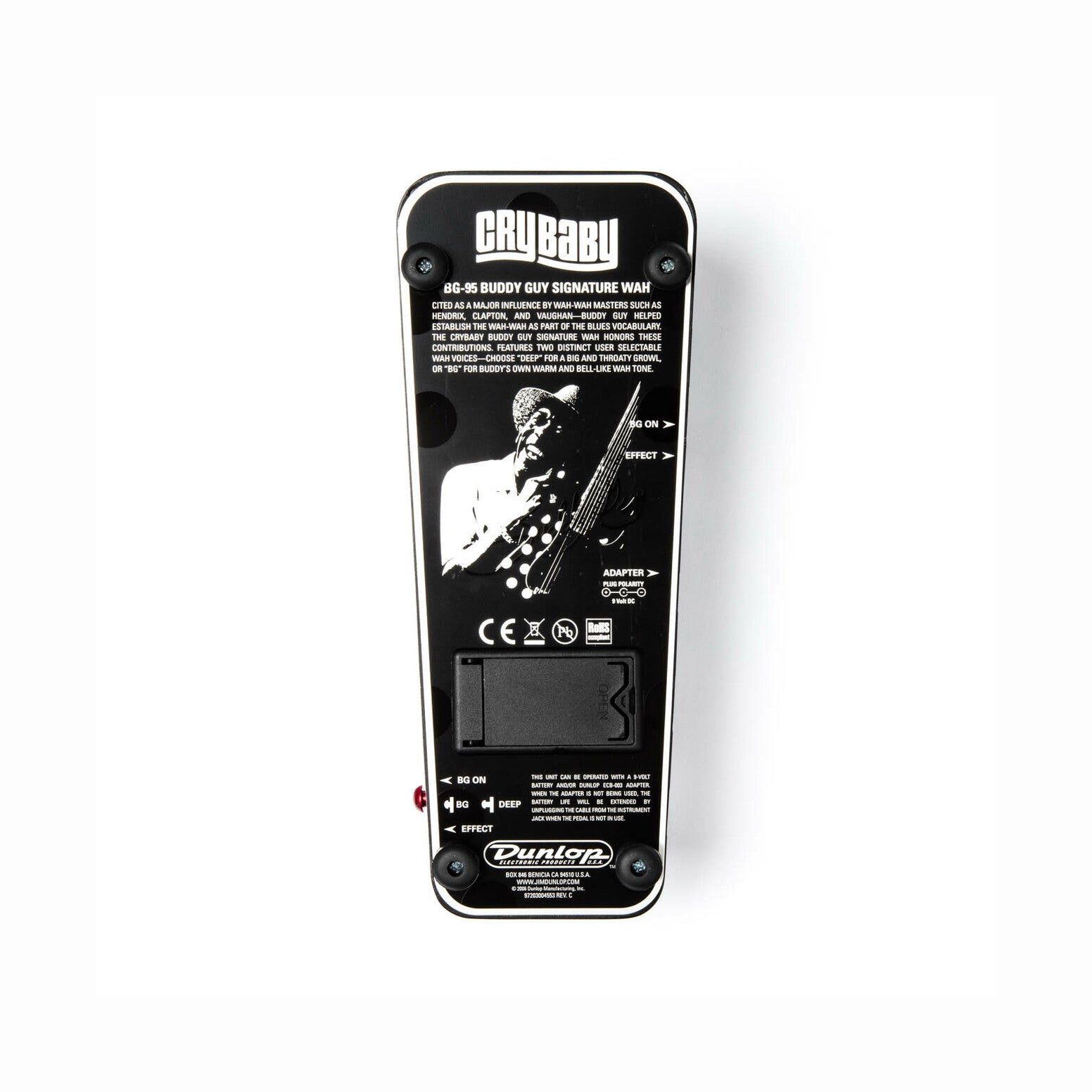 Blueslegenden Buddy Guy’s polkadot mönstrade signaturpedal utrustad med faselkomponent och två olika wahwah sound.