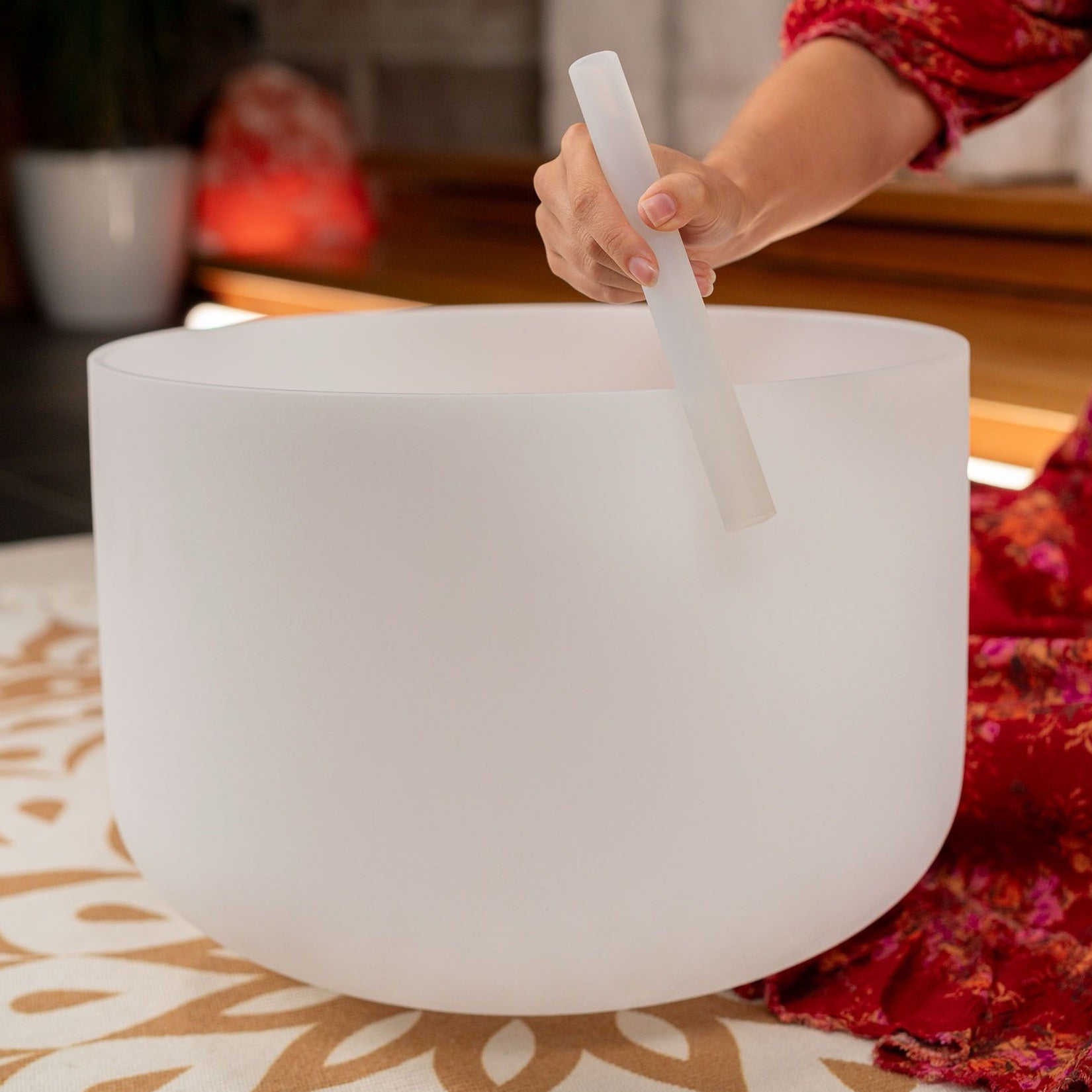 De vitfrostade Crystal Singing Bowls från Meinl Sonic Energy är tillverkade av kvarts och skapar en mycket behaglig aura med både ljud och design. Den långvariga, sfäriska tonen sprids när man slår lätt på skålen eller gnuggar den försiktigt, så att energin kan kännas i hela dess omgivning. Alla Crystal Singing Bowls levereras med en silikonring som bas för att undvika påverkan och för att skapa bästa möjliga resonans.