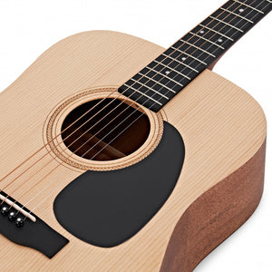 Dreadnought-modell till ett mycket bra pris och med en riktigt trevlig spelbarhet. Gitarren har ett solitt lock i Sitka Spruce. Sidor, bakstycke och hals i mahogny. Stall och greppbräda är gjorda av Micarta.