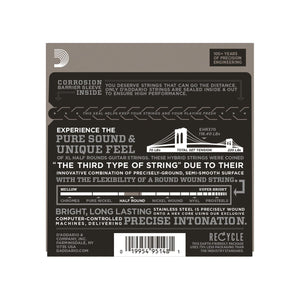 Half Round strängarna har en spinning helt av rostfritt stål. Ytan är polerad men inte helt vilket gör att tonen har nästan samma karatär som en oslipad sträng. Den jämna ytan ger den en fördel vid inspelningssammanhang då man vill undvika "slide"-effekten från fingrar som glider över strängen.