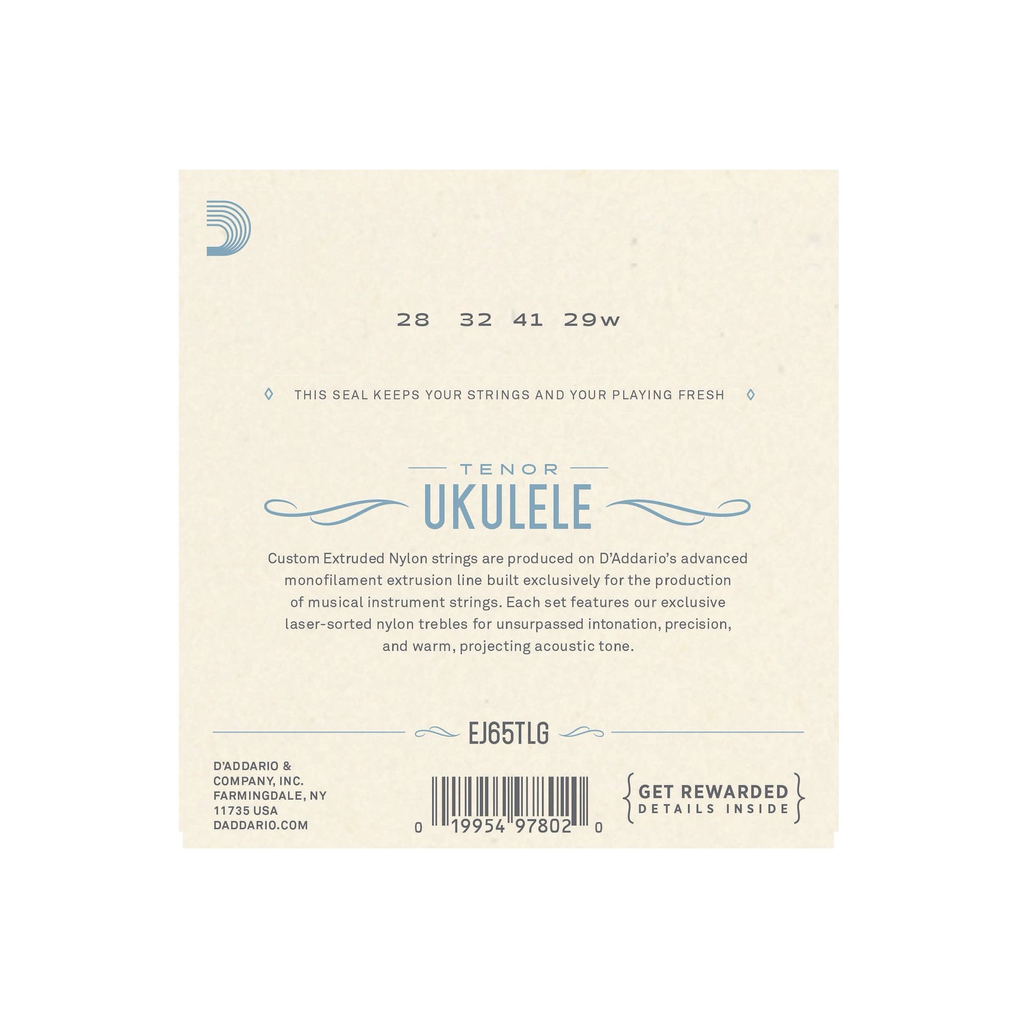 D'Addario Ej65t Pro-Arté Custom Extruded Nylon Tenor Ukulele Low G är ett strängset för tenorukulele med Low G-stämning som ger varm ton, tydlig projektion och exakt intonation. Kombinationen av lindad G-sträng och nylondiskanter ger ett fylligt register och balanserad respons för både komp och solospel.