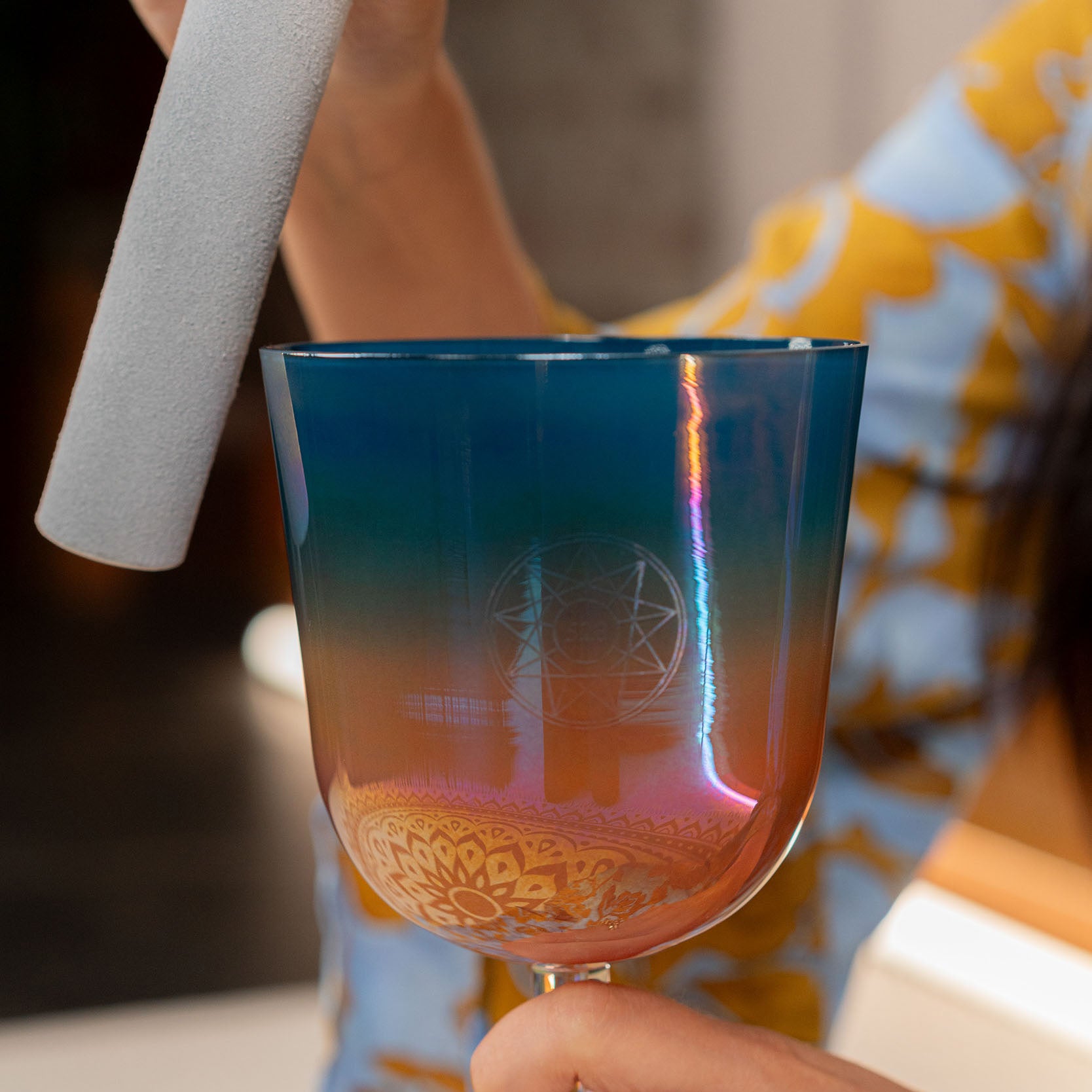 Essence Solfeggio Bowls svarar utan ansträngning på även de mest känsliga rörelserna av en klubba, vilket gör dem lätta att spela. Dessa skålar är visuellt fantastiska och skimrar olika beroende på belysningen, med vackert integrerade färger som ger en unik estetisk charm. De är inte bara en ljudupplevelse, utan ett visuellt mästerverk, perfekt för att förbättra alla meditativa eller terapeutiska miljöer. Varje skål levereras med en skyddande bärväska och en mockaklubba.