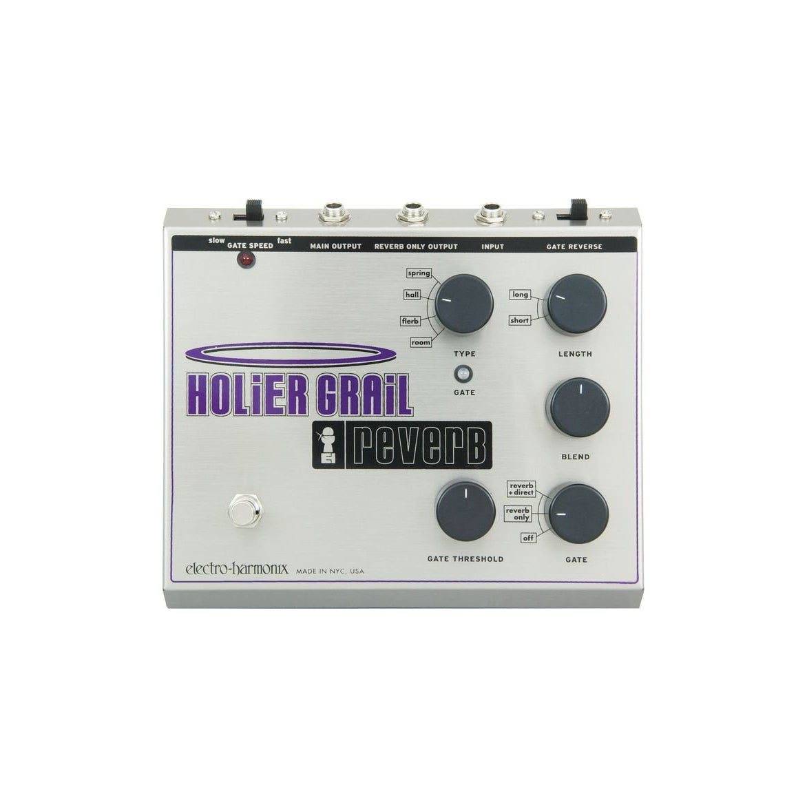 Reverb + Golden Gates. Den här expansionen av klangerna i Holy Grail innehåller åtta kvalitativa reverb för gitarrister och experimentalister - två varianter av vardera Spring, Hall, Room, och Flerb. Post-reverb Gate och Reverse Gate öppnar upp nya möjligheter för ljuddesign. True bypass. 18VDC power supply inkluderat.