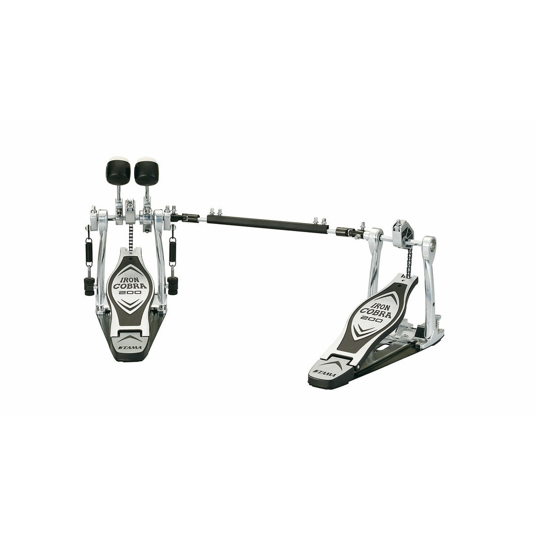 TAMA Iron Cobra 200 Dubbelpedal i vänster utförande! - HP200PTWL Tama Iron Cobra 200 serien erbjuder pedaler till avskalat pris men utan att tumma på kvaliteten. De viktigaste funktionerna som Power Glide kedjehjul, justerbar fjäderspänning och vinkel på bastrumklubban finns även på HP200 Serien, samt den balans och kraft som kännetecknar Iron Cobra sedan första modellen 1993.