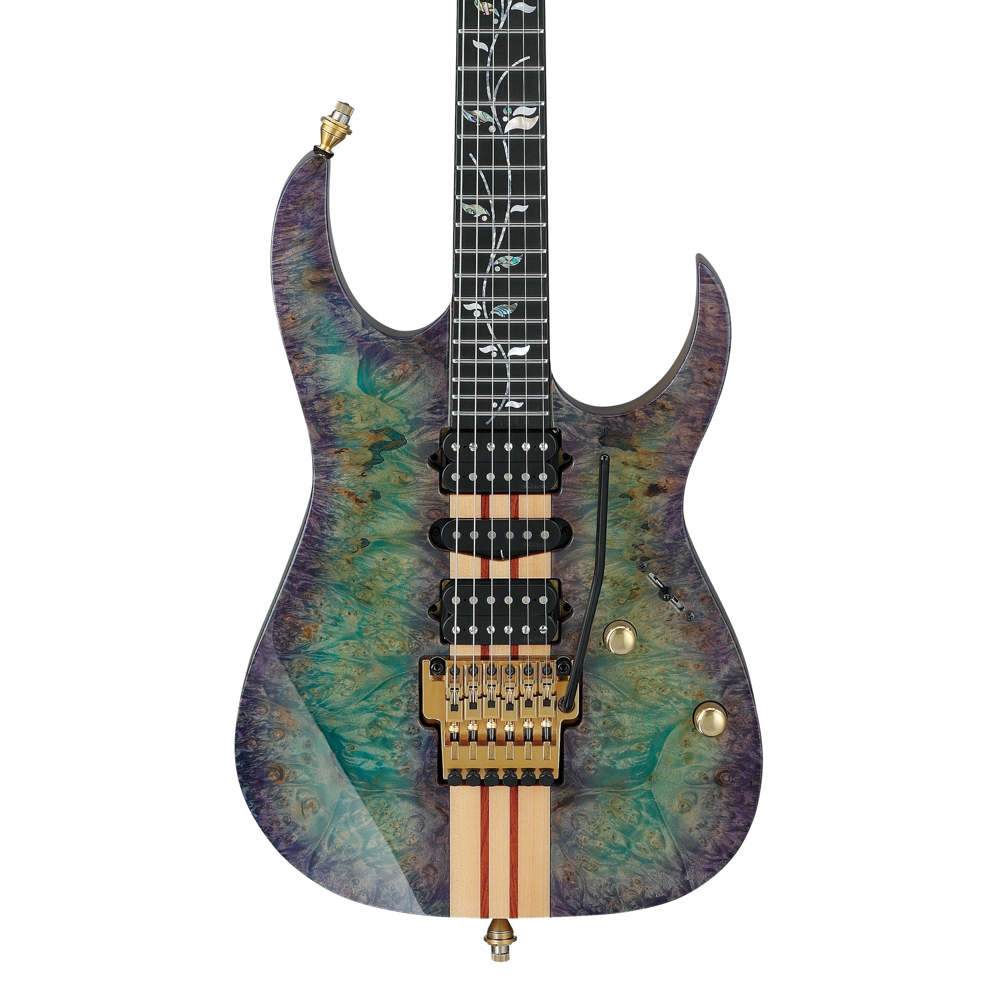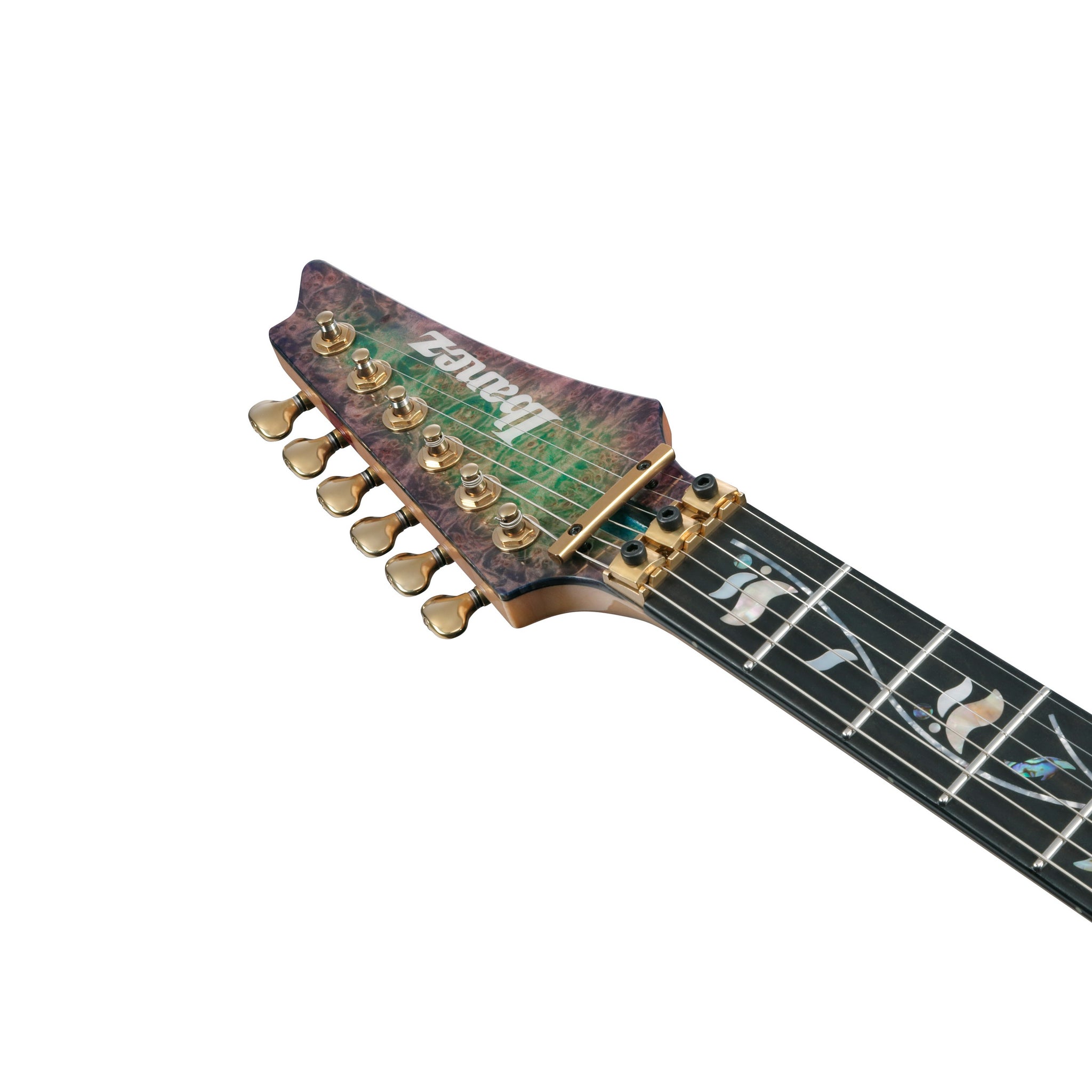 Den femdelade Super Wizard-halsen i lönn och purpleheart är Ibanez tunnaste och snabbaste halsprofil. Tillsammans med den mycket platta greppbrädan ger den en blixtsnabb spelkänsla som lämpar sig perfekt för tekniskt avancerade stilar.
