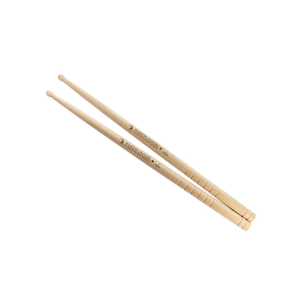 Headhunters Hickory B Grooves trumstock med Grip control. Det unika mönstergreppet ‘Grip Control’ ger dig den ultimata komforten och prestandan utan att kompromissa med kontakten mot handen. Ett säkert och bekvämt grepp som inte slits ut.