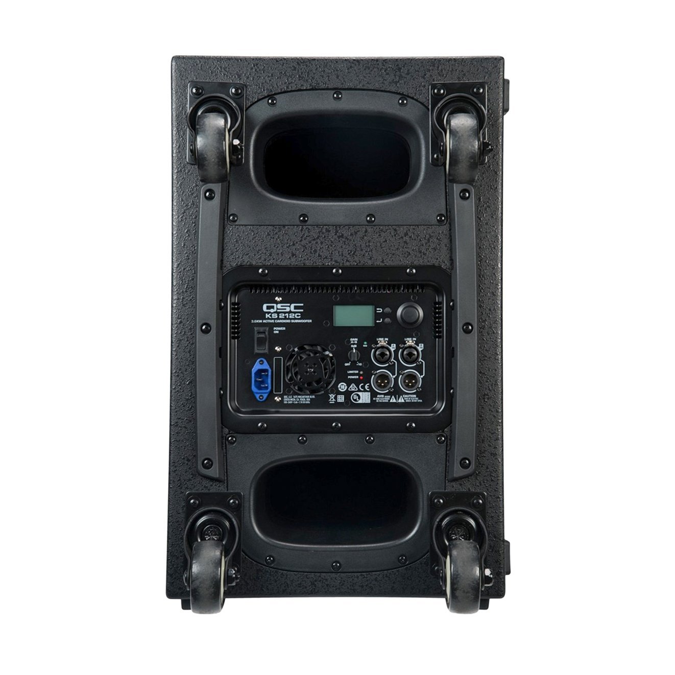 För enkel transport är KS212C utrustad med kraftiga aluminiumhandtag och fyra hjul på baksidan. Två M20 punkter möjliggör att du kan montera högtalarstativrör både horisontellt eller vertikalt.