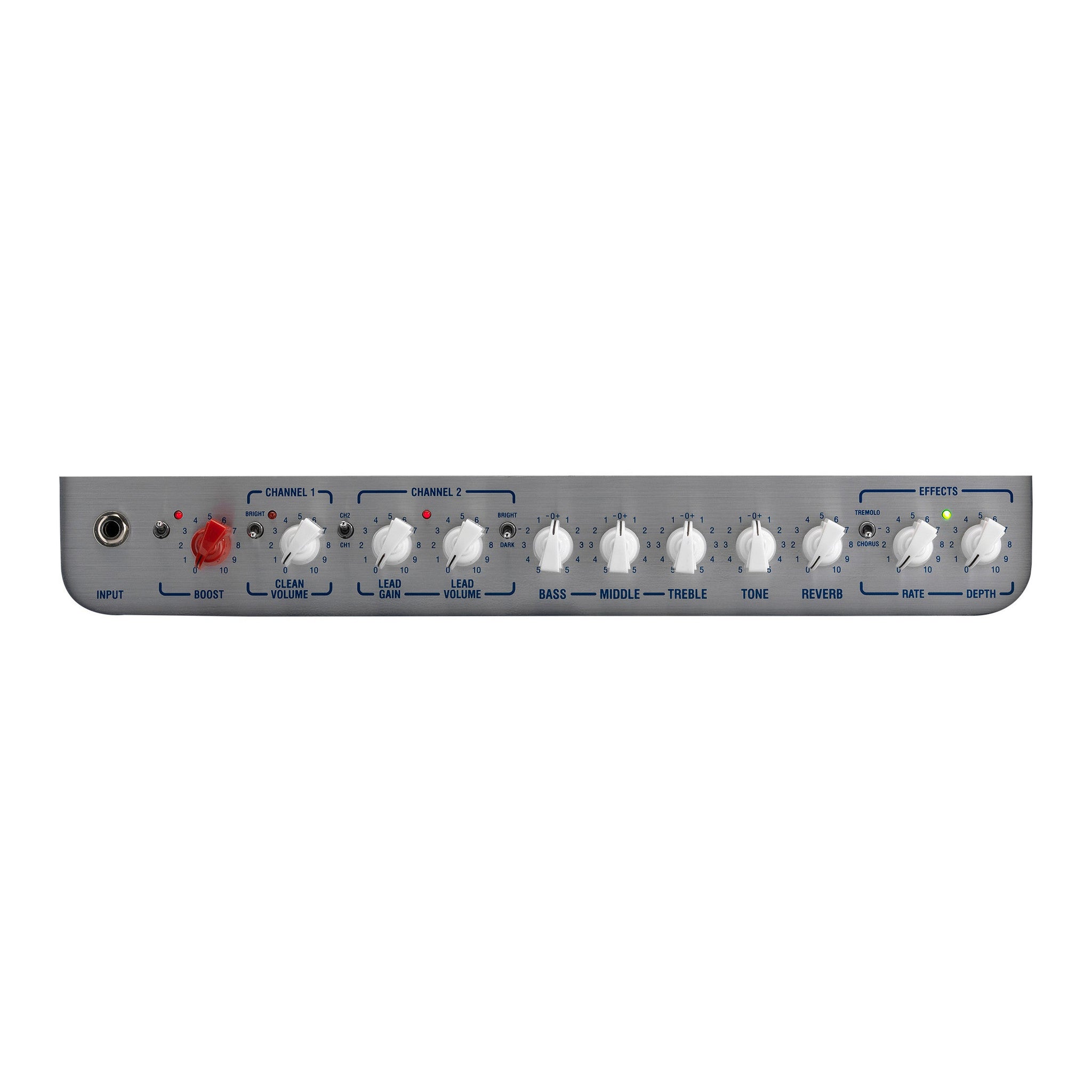 LFSUPER60-112 har en inbyggd, switchbar BOOST. Detta ger tekniskt sett en 3:e kanal som boostar en ren ton till lätt dist, eller en distad ton till en glödhet lead-ton.