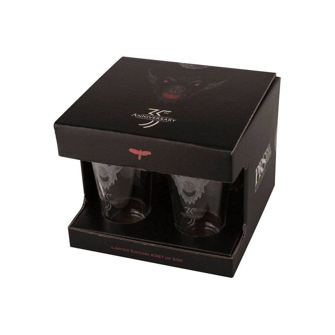 För att fira tillkännagivandet av PRS 9:e Dragon-gitarr för deras 35-årsjubileum har de gjort denna mäktiga uppsättning av fyra pint-glas.
