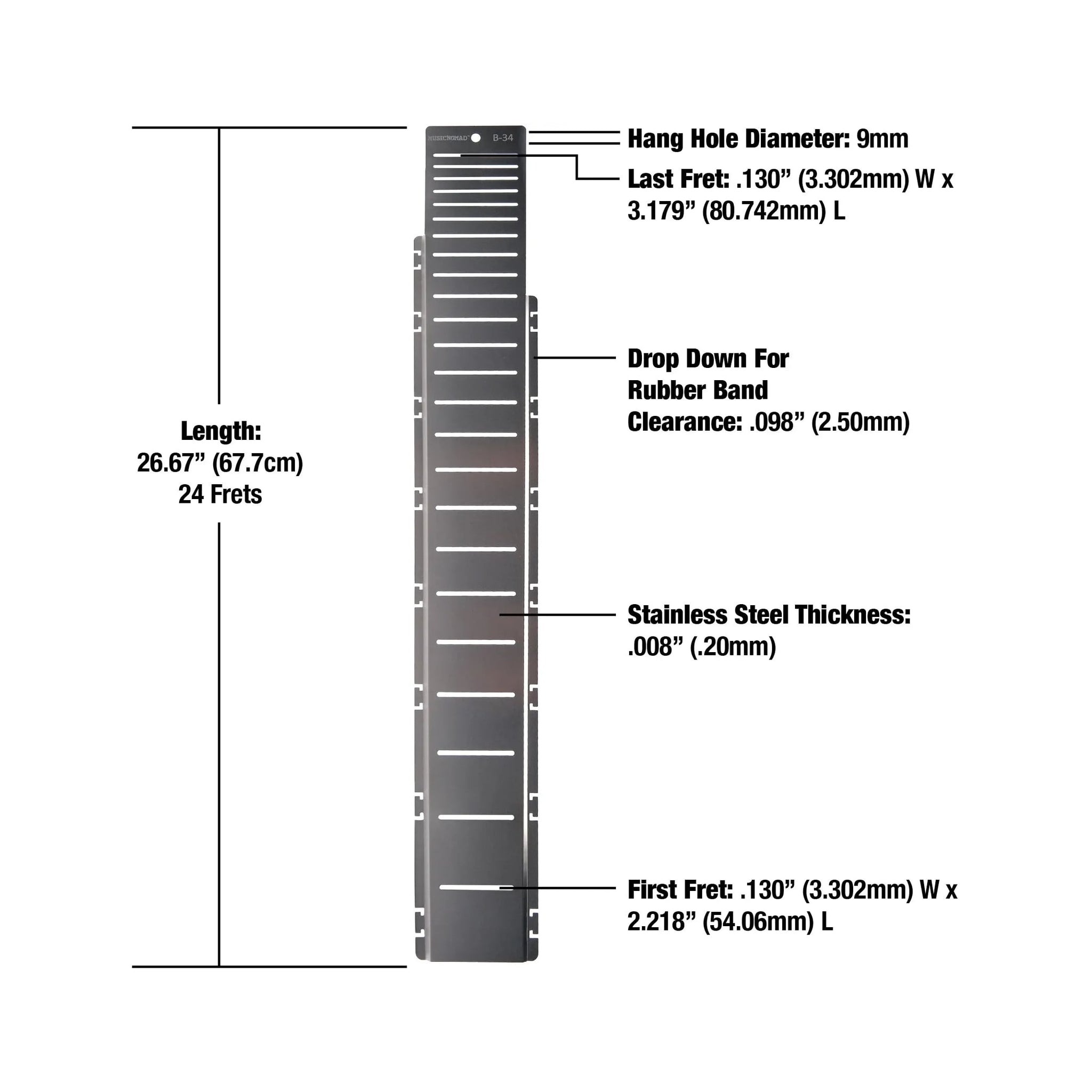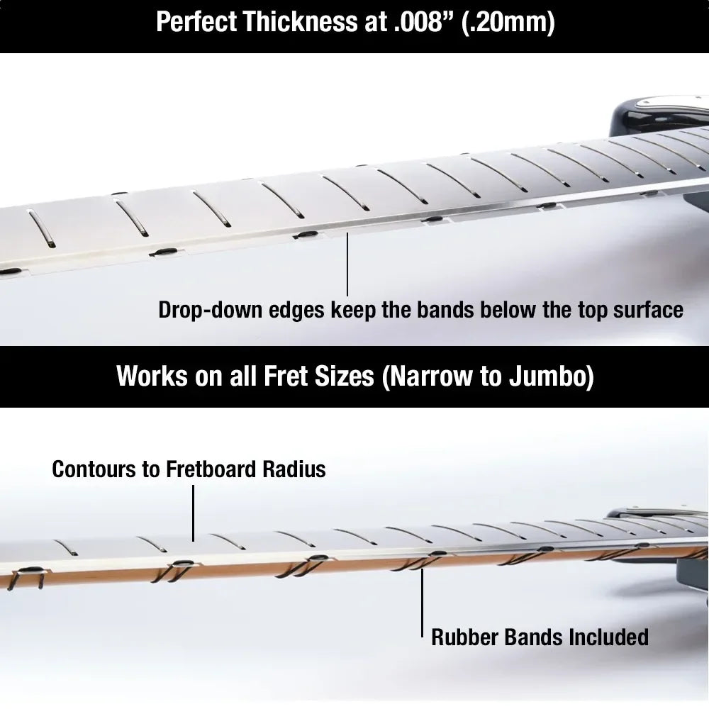 Med detta praktiska och pålitliga skydd behöver du inte maskera greppbrädan med tejp eller chansa och riskera fula märken i träet när du putsar, slipar eller gör andra jobb på din gitarrs bandstavar. MusicNomad's Fret Shield är tillverkad i 0,2mm tunt, rostfritt stål som gör jobbet perfekt hundratals gånger.