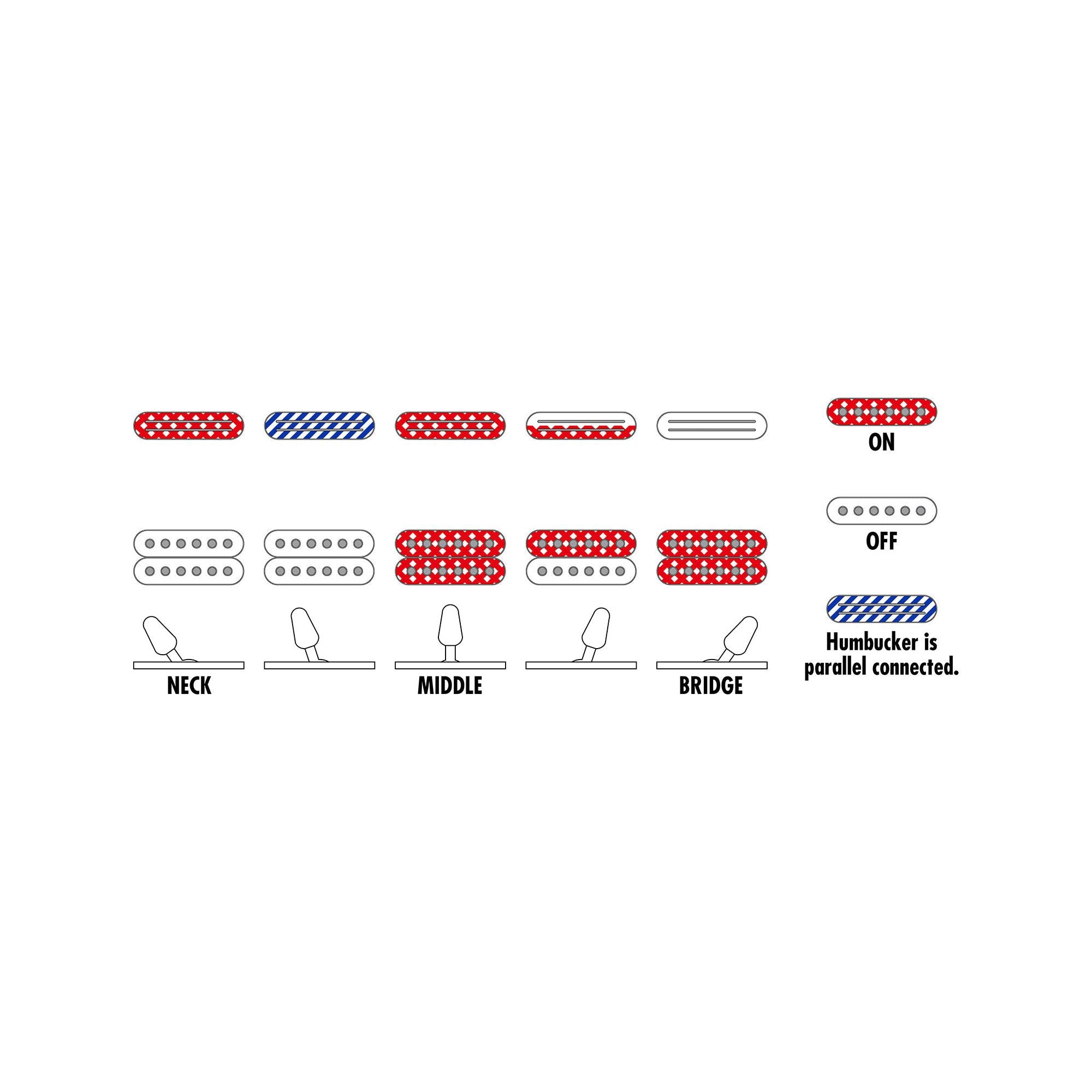 Mickarna är kopplade på en 5-läges switch med gemensam ton och volymkontroll.