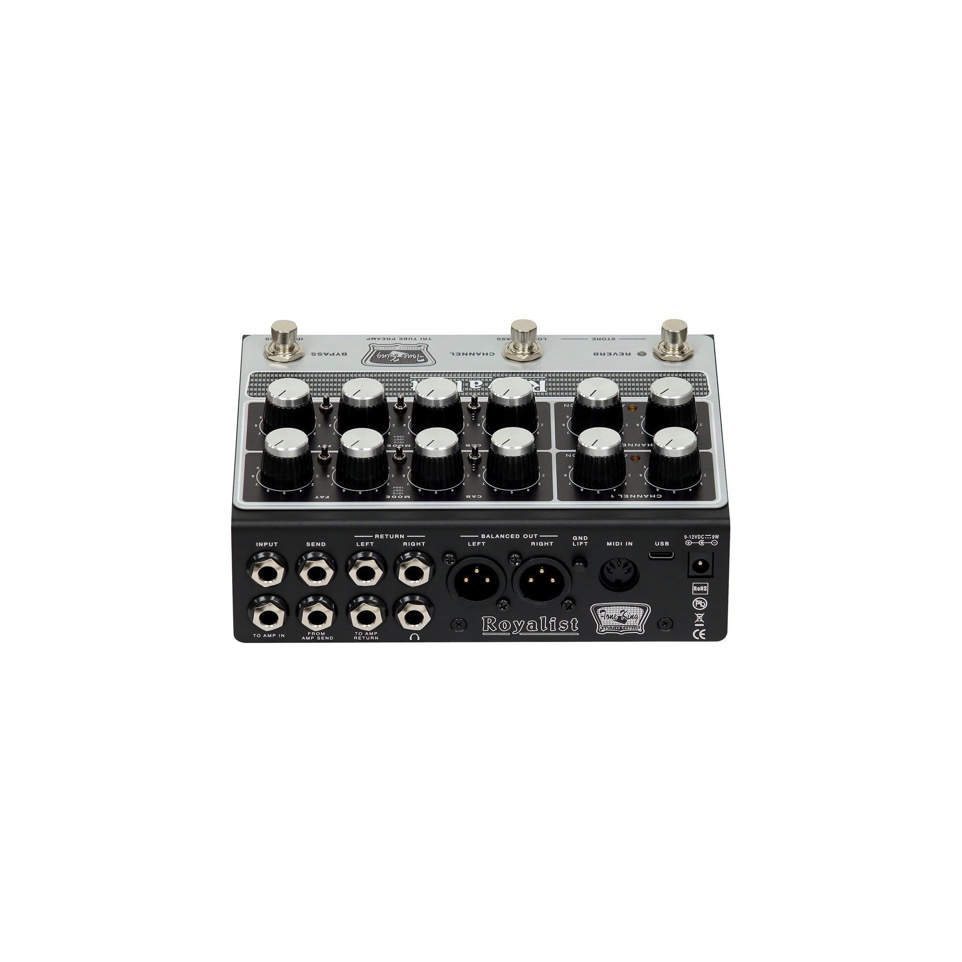 Royalist Preamp är utrustad med Tone Kings lågfördröjda IR- och slutstegssimuleringsmotor för direktanslutning till PA, ljudinterface eller hörlurar.