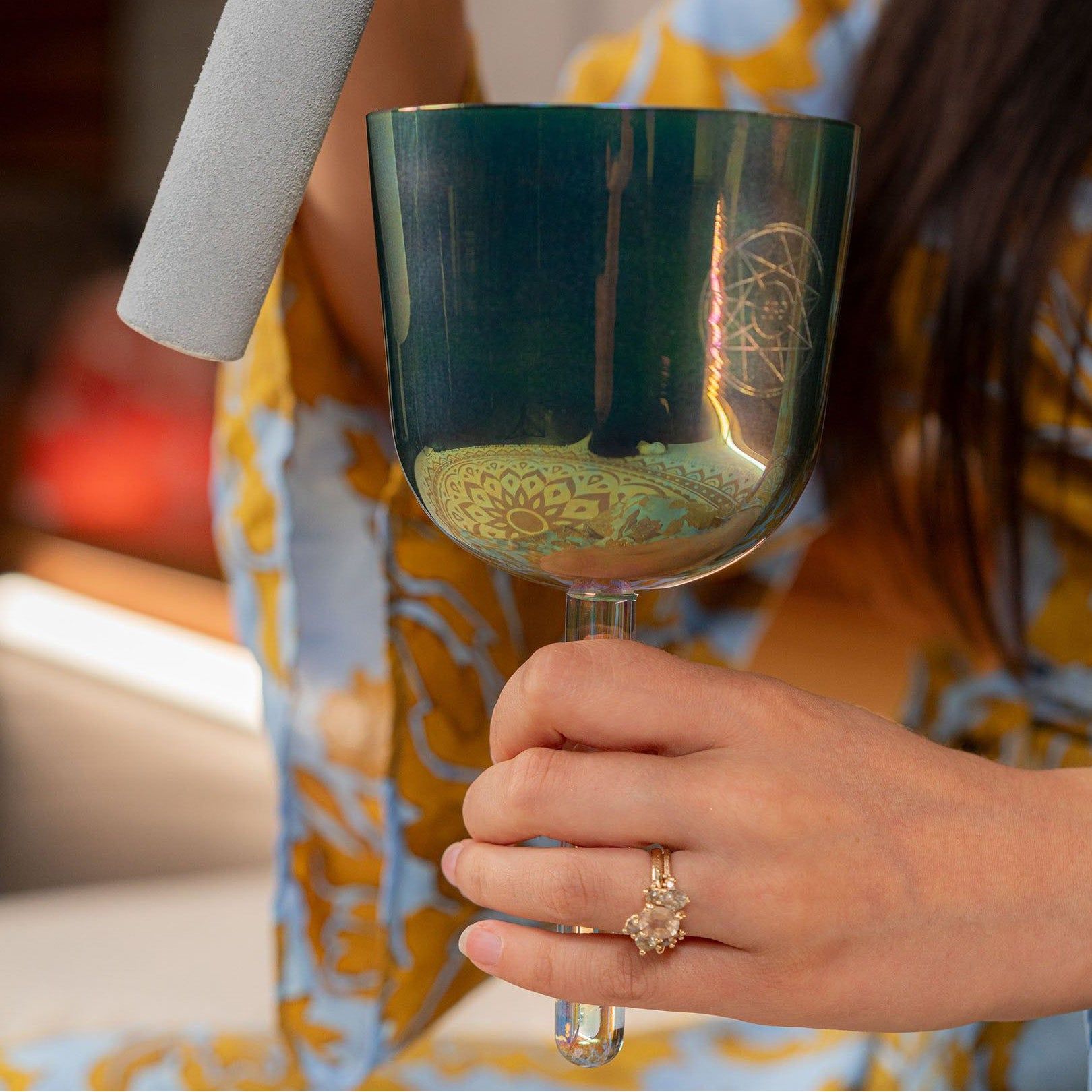 Essence Solfeggio Crystal Singing Bowls från Meinl Sonic Energy är mästerligt handgjorda av kvarts med hög renhet, som förkroppsligar både precision och artisteri. Dessa lätta skålar producerar exceptionellt långvarig resonans, med klara, starka och rika vibrationer som fyller rummet med dynamiska övertoner.