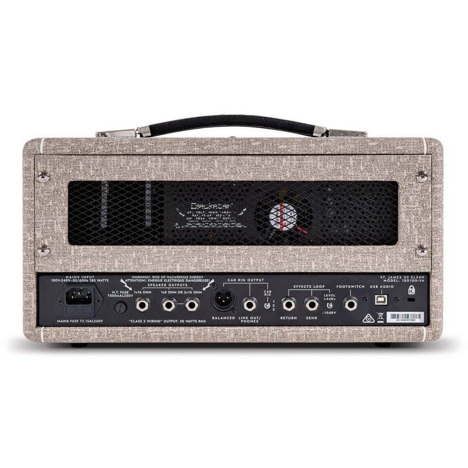 50 watts rörtopp som med sina 6,7kg är en ren fröjd att ta med på turné! ST. James 50 EL34H är bestyckad med två ECC83 i försteget och två EL34 i slutsteget.