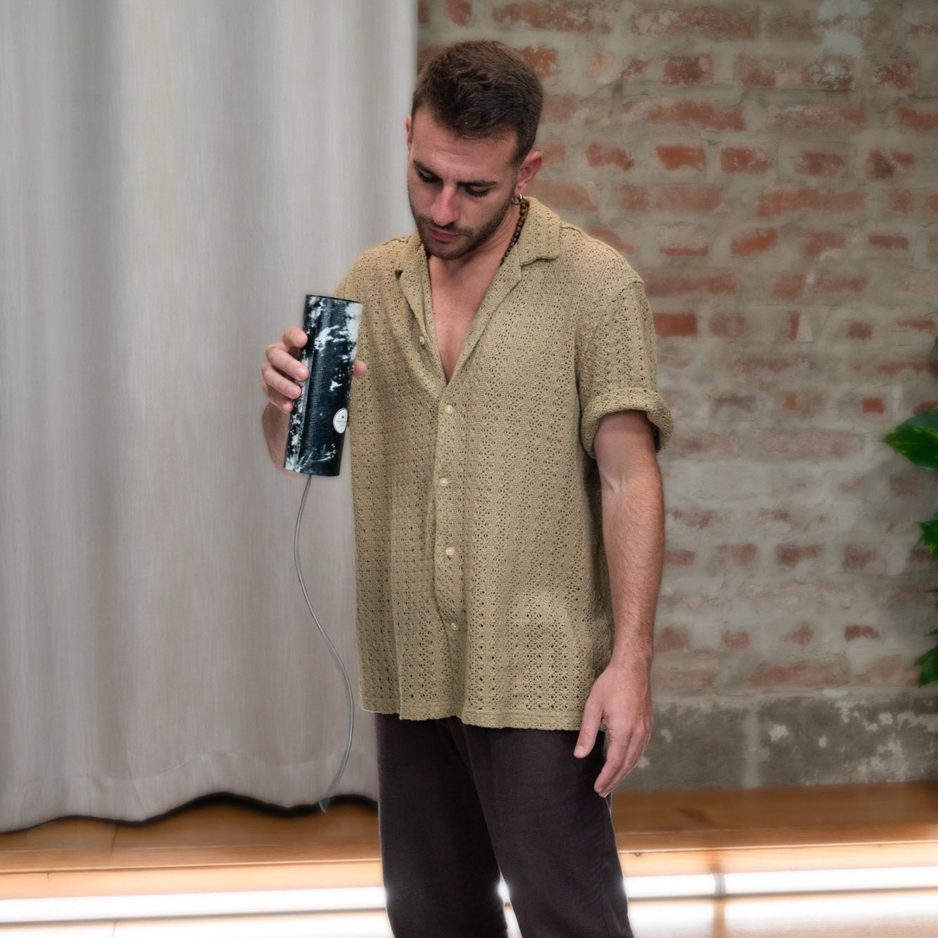 Den lätta syntetiska kroppen är bekväm att hålla i och enkel att spela på. Genom att låta metallfjädern hänga fritt och styra den med mjuka handledsrörelser uppstår det karaktäristiska åskljudet. Knackar du lätt på fjädern skapas skarpa, fräsande accenter, och genom att öppna och stänga ljudhålet kan du forma uttrycksfulla wah-wah-liknande effekter.