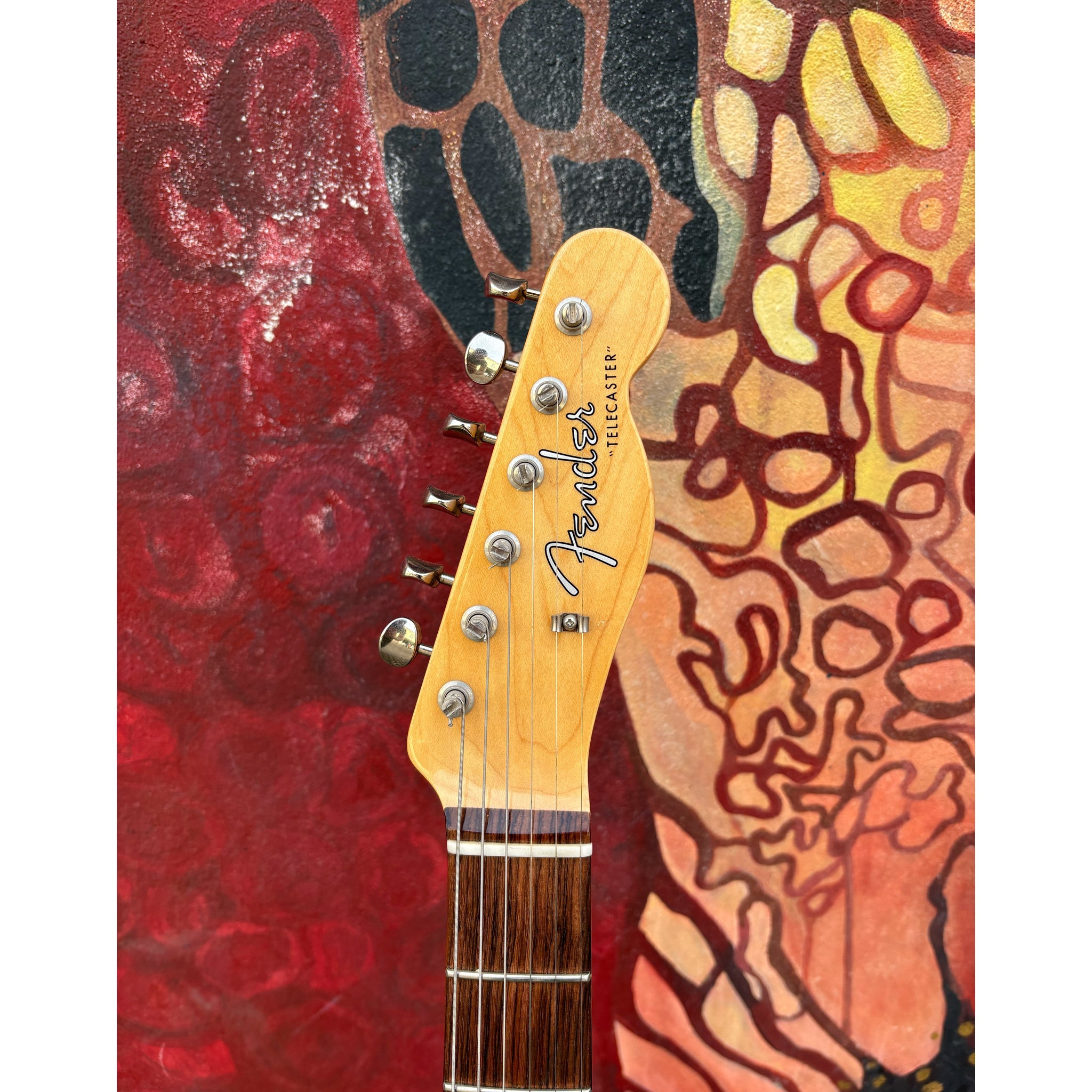Fender Vintage Hot Rod ’60s Telecaster från 2014 i klassisk 3-Color Sunburst med rosewood-greppbräda. Modellen kombinerar äkta 60-tals Tele-stil med moderna förbättringar och en ovanlig tre-mik-konfiguration för maximal mångsidighet.