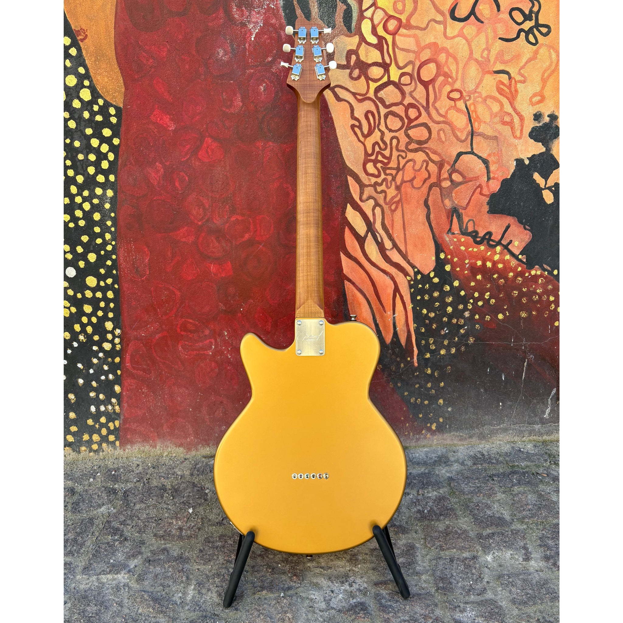 Gitarrens kropp har en finish i den tunnaste möjliga polyuretanen som går i matt metallic gold. Halsen har fått behandling som ofta kallas "burnishing" som fått en skyddande finish i hårdvaxolja som ger halsen en otroligt mjuk och snabb känsla.