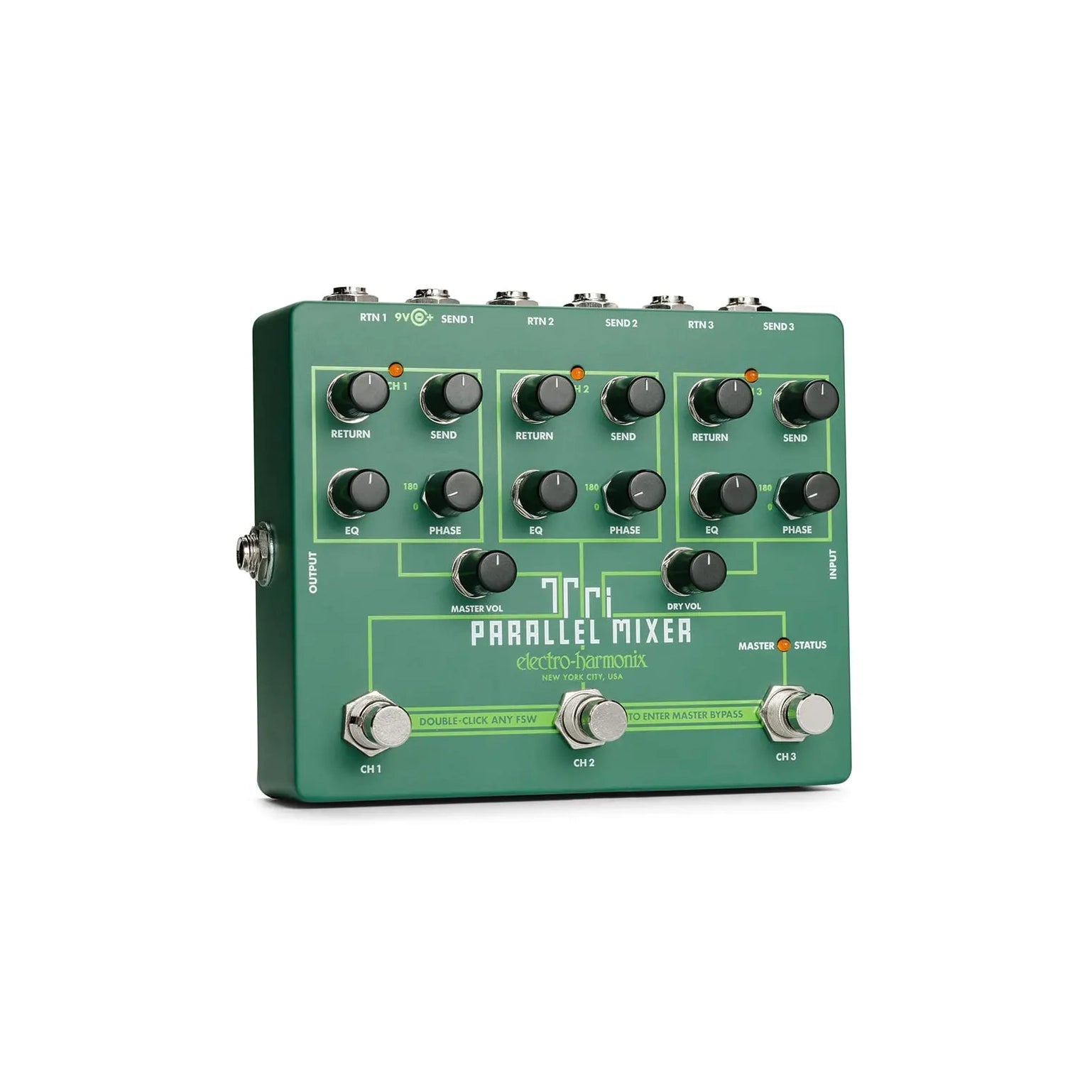 The EHX TriParallel Mixer is a powerful effects creation and mixing hub with three separate FX loops and flexible controls that allow for multiple configurations.