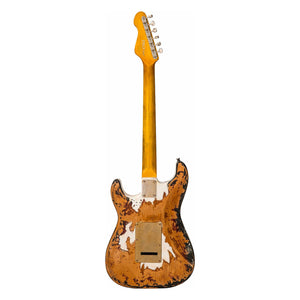 Starting life as a V6MRSSB with a Sunburst finish, the body has been sprayed with a white acrylic undercoat, then professionally aged to reveal areas of the original Sunburst and natural wood on the body front and back.