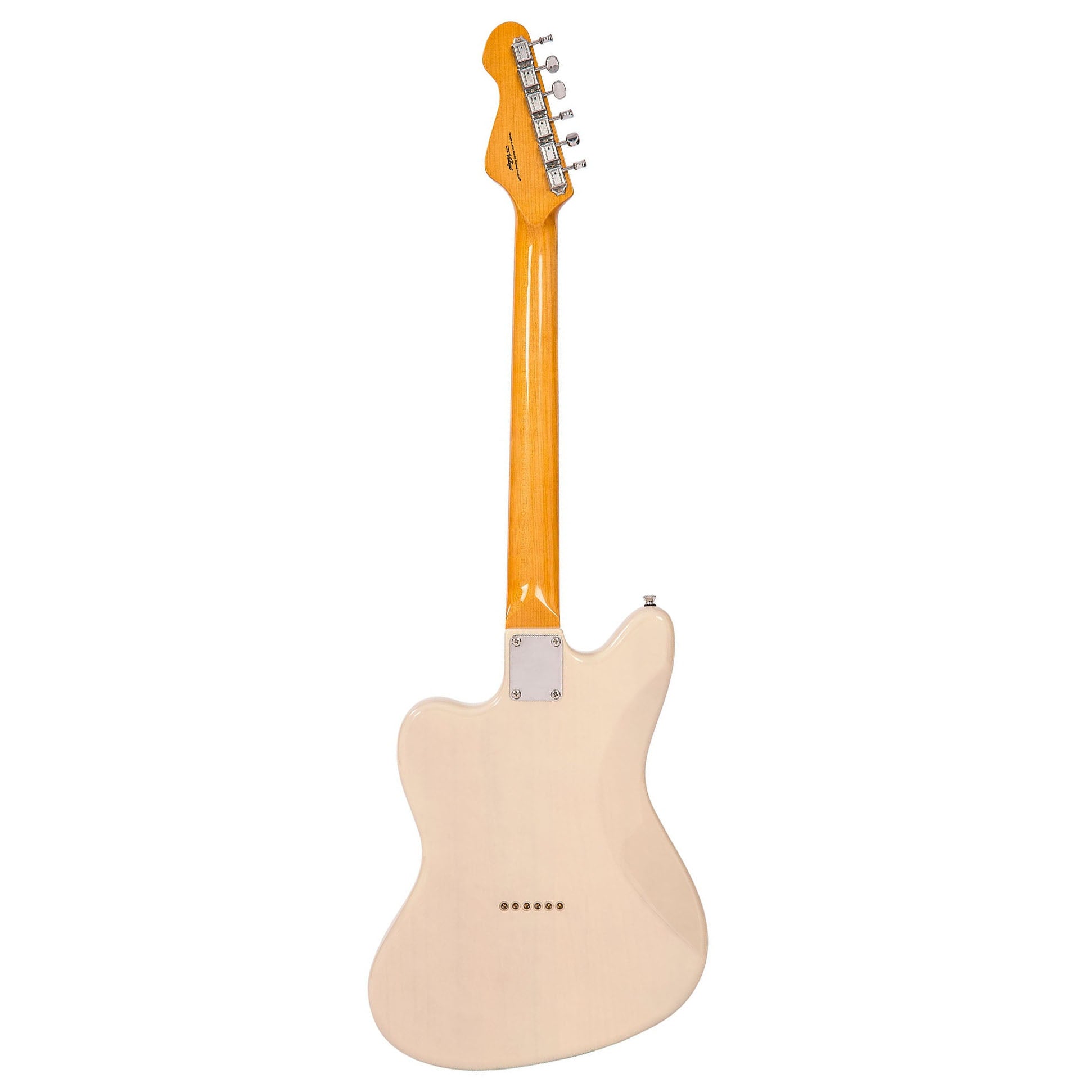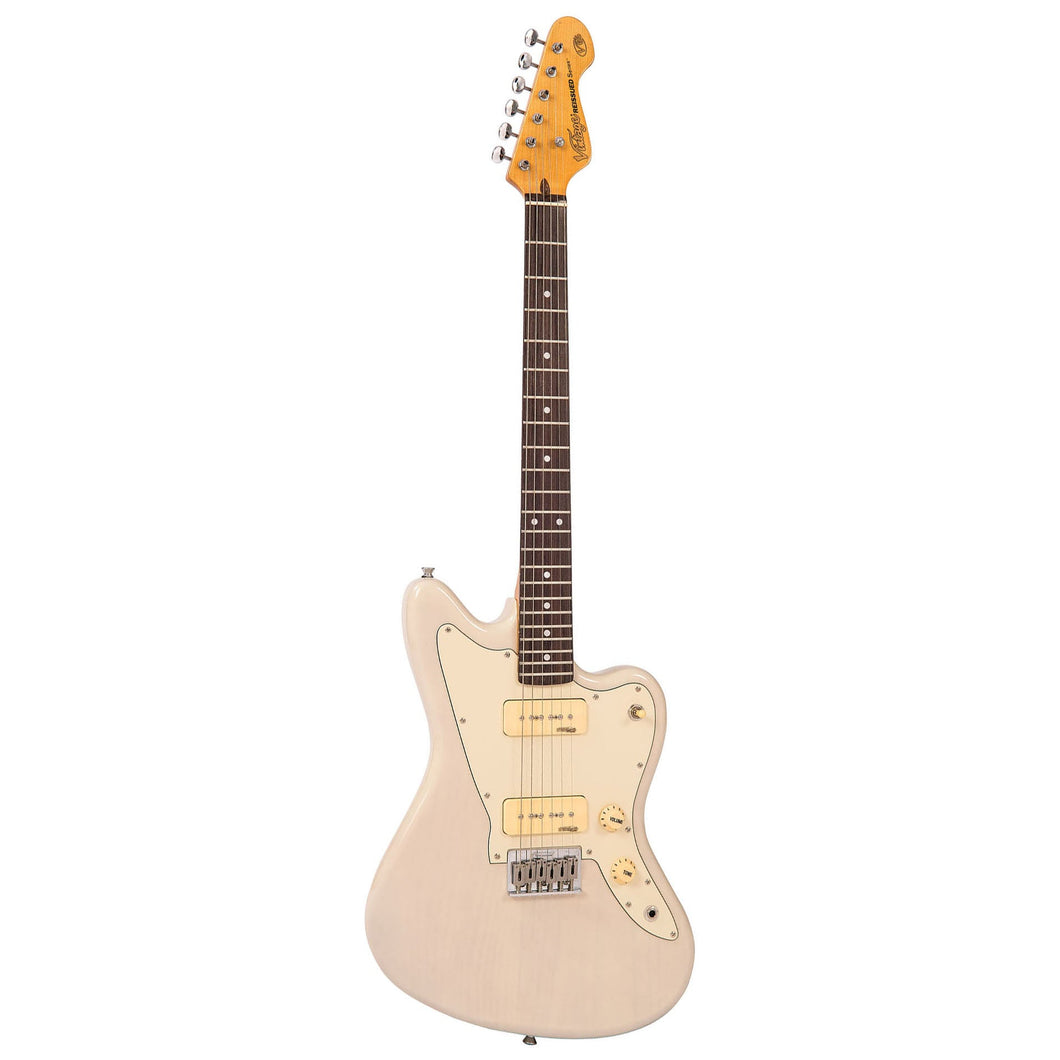 Icon V62 Ash Blonde är en 6-strängad elgitarr från Vintage. Gitarren är gjord i träslagen Maple, Mahogany och Lignum Rosa. Kroppen är gjord i Poplar och halsen är gjord i Maple med Lignum Rosa-greppbräda. Gitarren är utrustad med 22 band, Wilkinson Deluxe WJ55S-stämskruvar, Wilkinson Hardtail-stall och Wilkinson Soapbar-pickups.